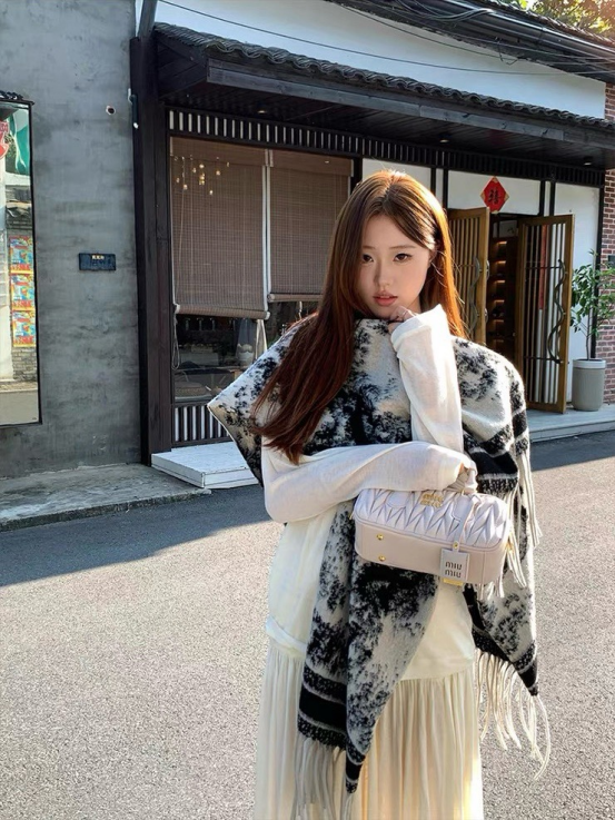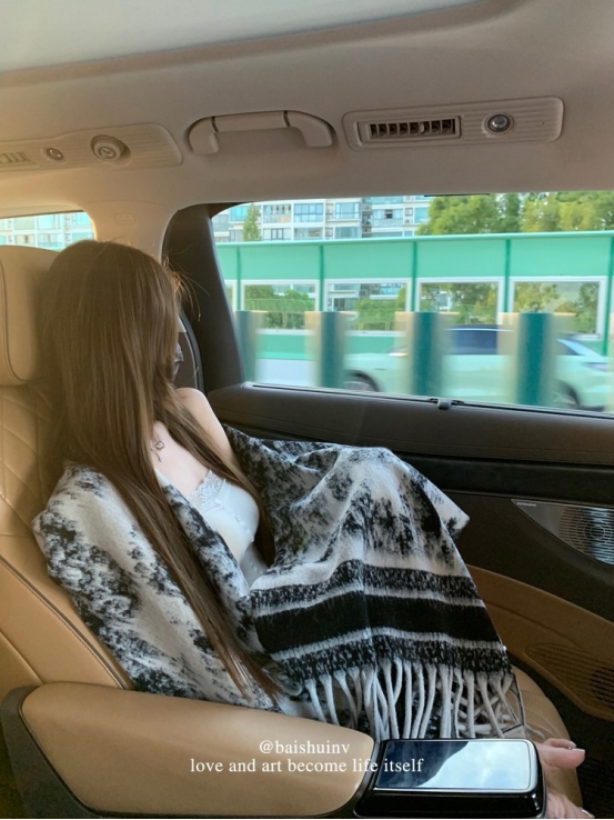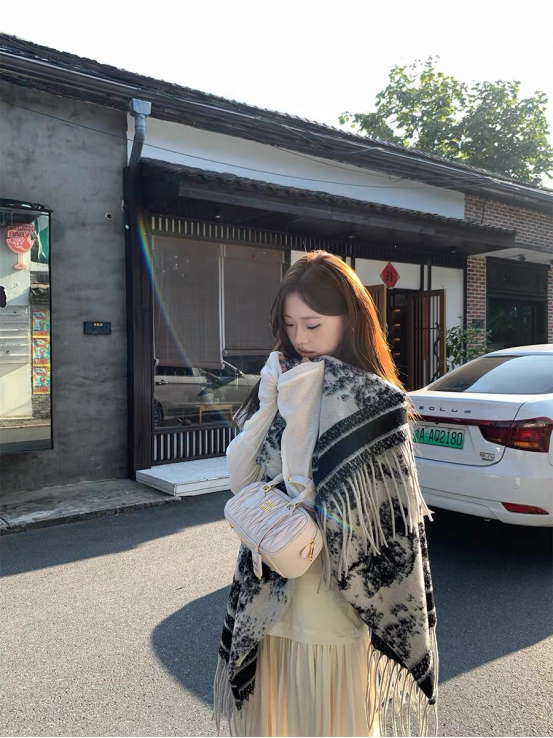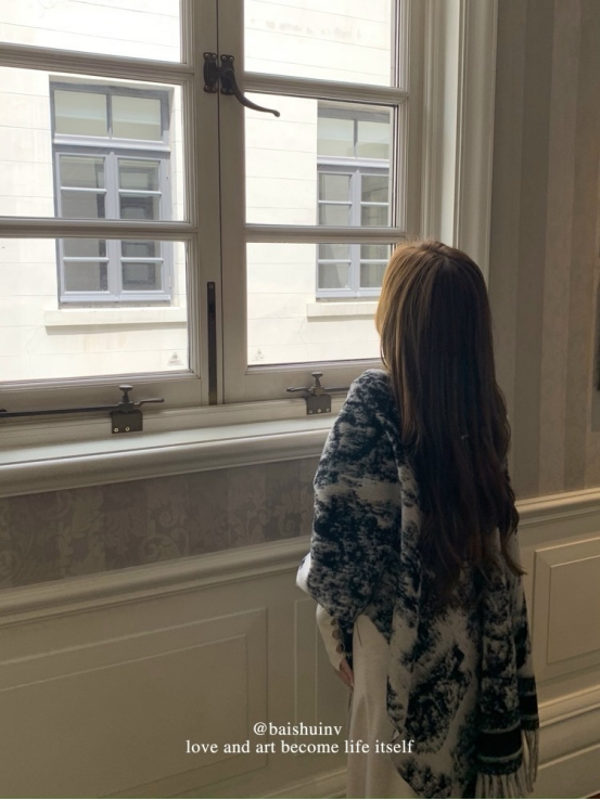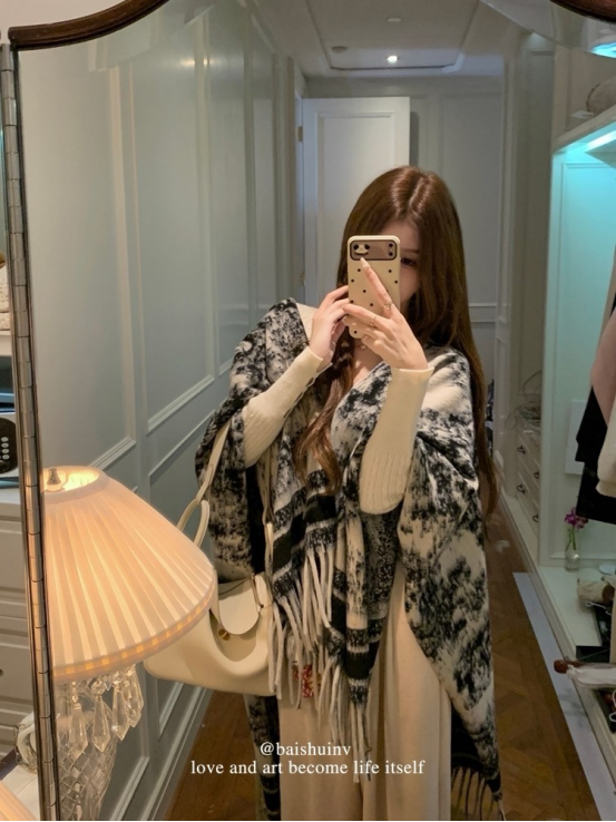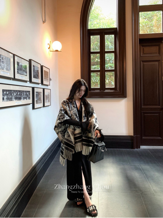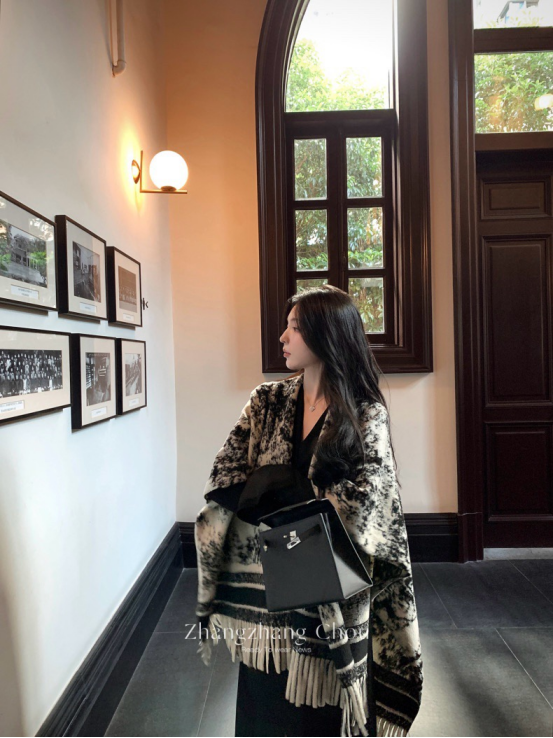 爱鼠这条水墨披肩啦 两位数的披肩丸全不输给大牌 用料狠哫炒鸡厚实 冬天的出片搭子 又保暖又好拍