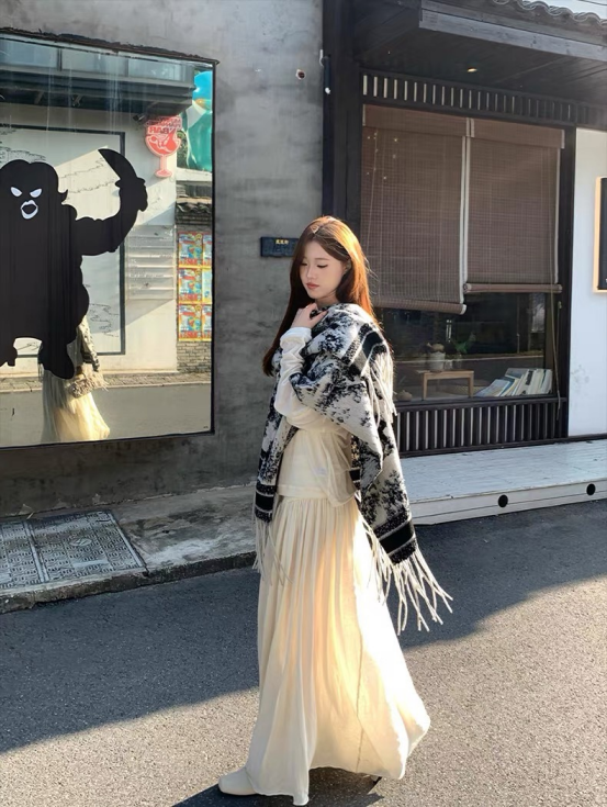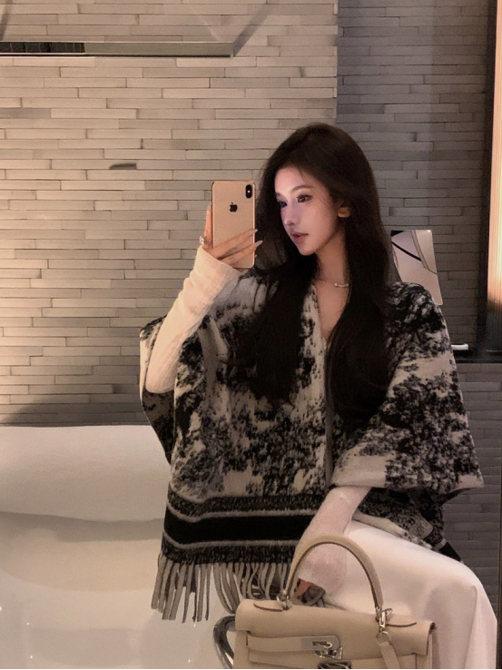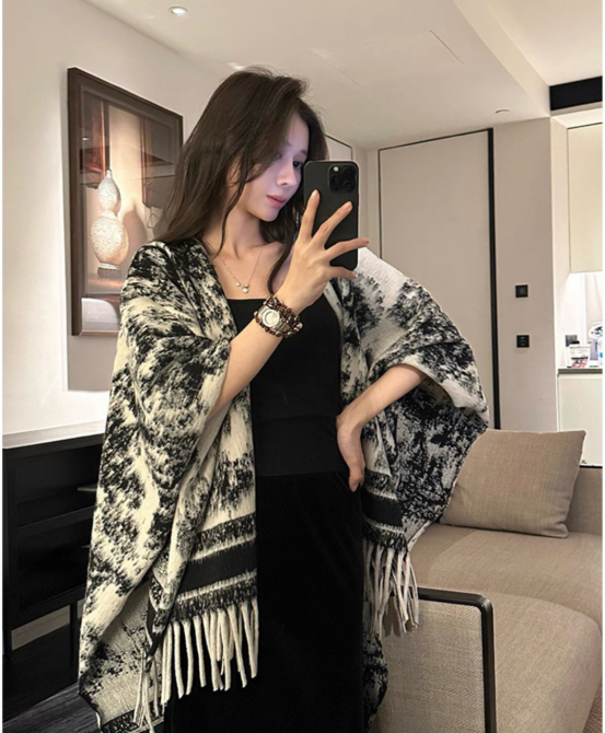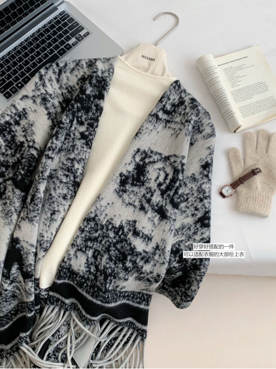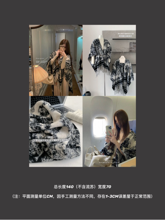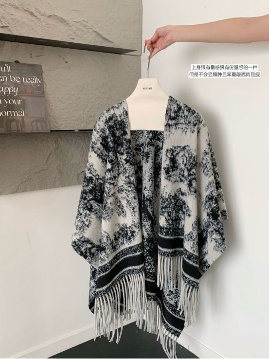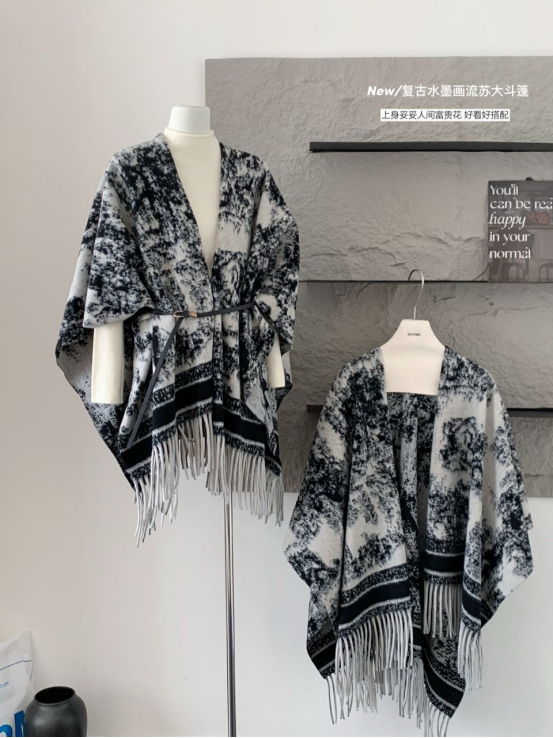 😍【岚可可新中式复古水墨画流苏大斗篷】😍 ✨被问爆的披肩 狠狠安利给姐妹们❗❗❗ 🍂特别厚实裹在身上狠有安全感 🌟披在身上也不会滑落特稳固👍👍