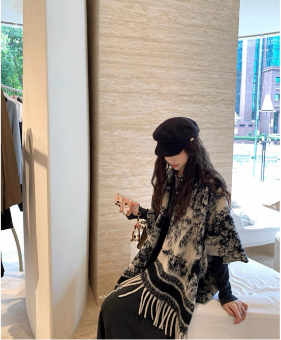 披肩的贵气感 哪位女生可以抗拒呢 搭配各种裙子上衣都带随意的富贵feel 秋冬真的可以试试披肩 温柔又敲显气质