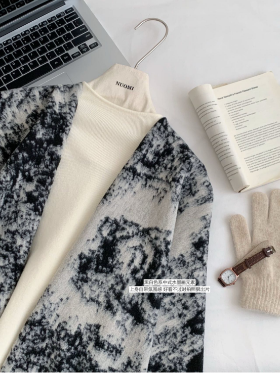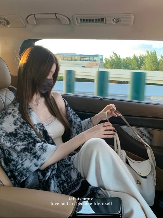 这件新中式的水墨画披肩 谁披谁好看呀! 上身妥妥财阀千金大小姐即视感 满满的贵气感扑面而来