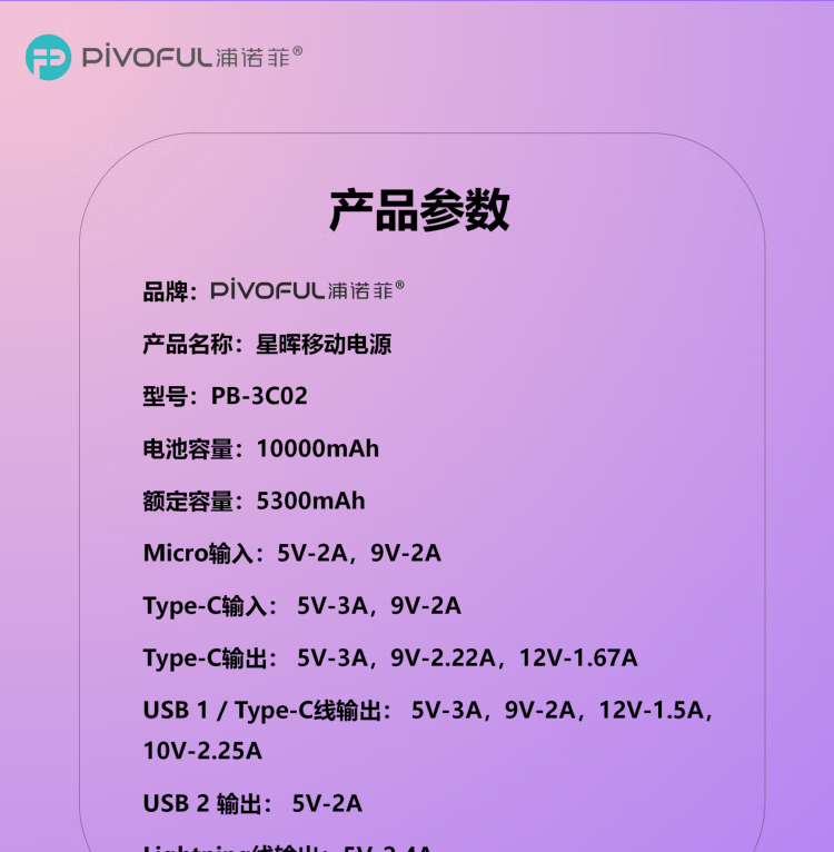 浦诺菲 星辉自带线快充移动电