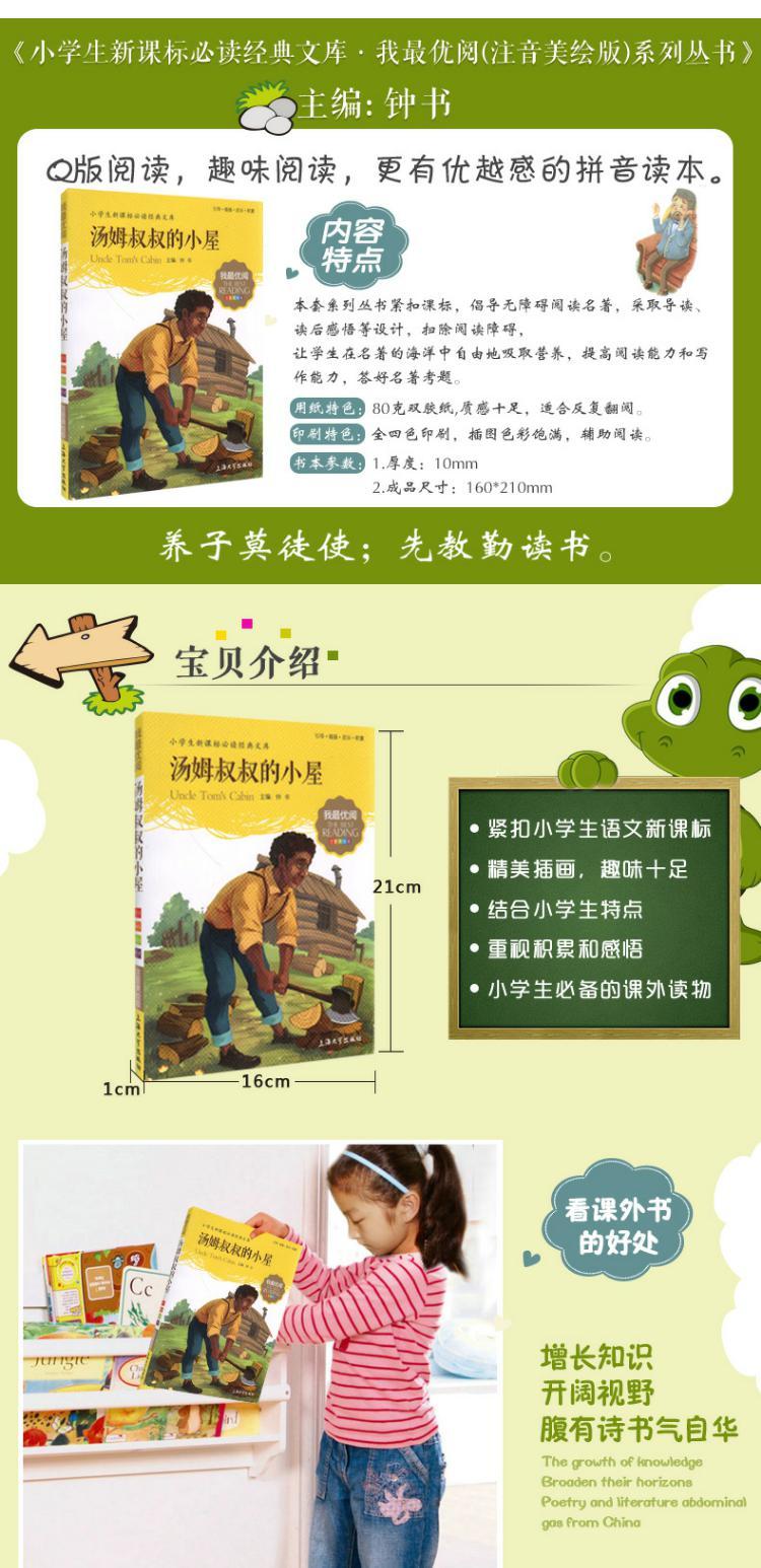 1-3年级适用 注音美绘版-汤姆叔叔的小屋 钟书正版少儿读物我优阅系列拼音彩图版汤姆叔叔的小屋 儿童文学课外读物小学生作文阅读