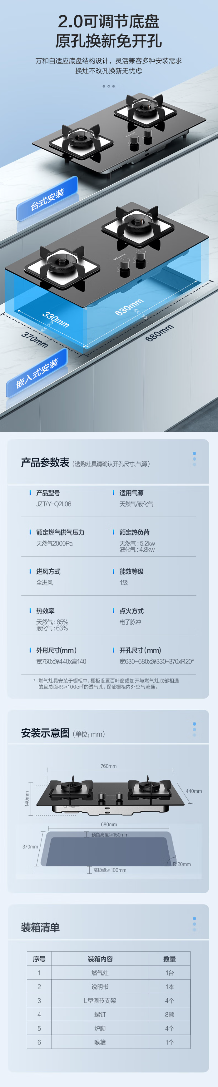 万和(510886)JZT-Q2L06燃气灶嵌入式家用钢化玻璃面板免扩孔5.2KW爆炒大火力 Q2L06清洁大师