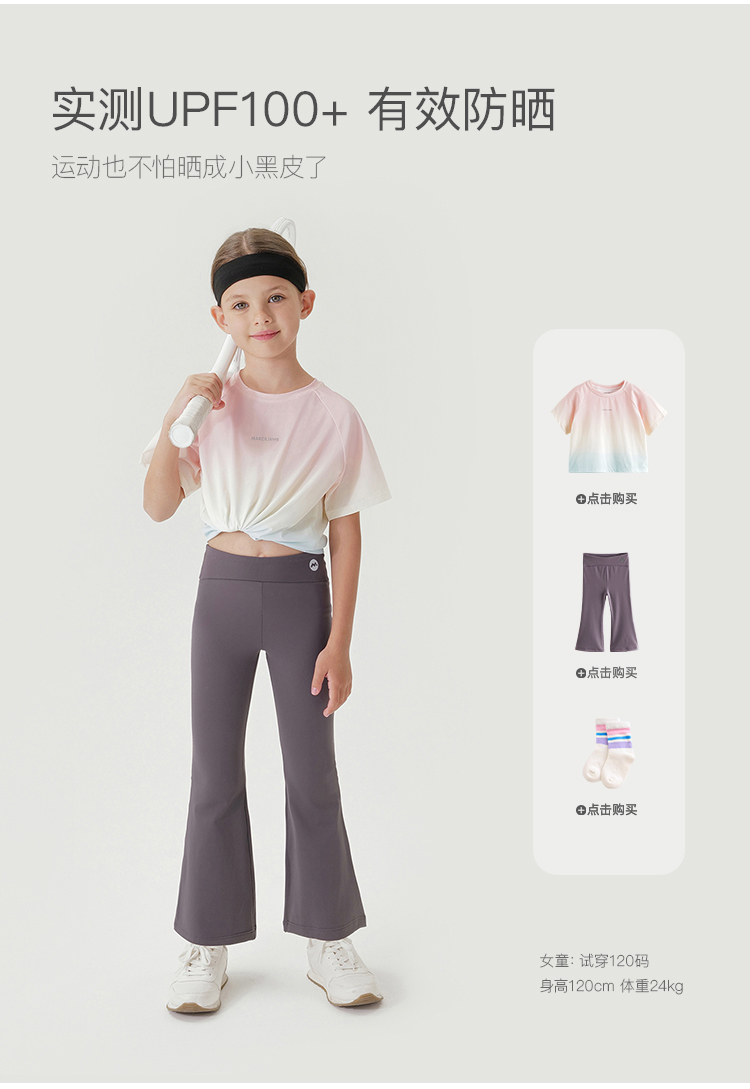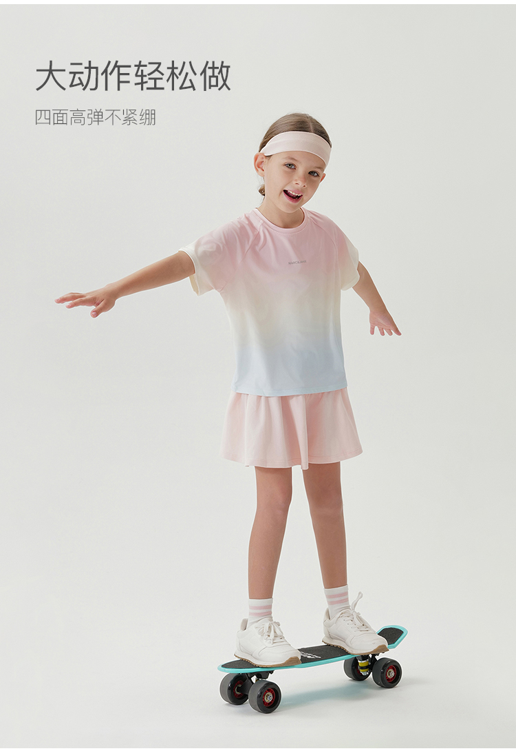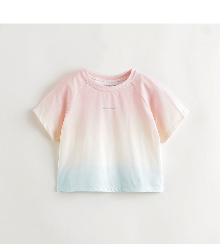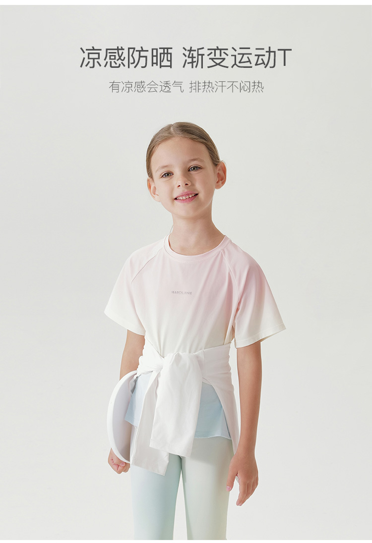 [凉感防晒]马克珍妮男女童渐变色弹力运动短袖T恤上衣夏装550508