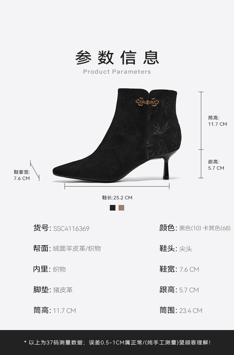 星期六典雅中式风气质尖头时装靴SSC4116369