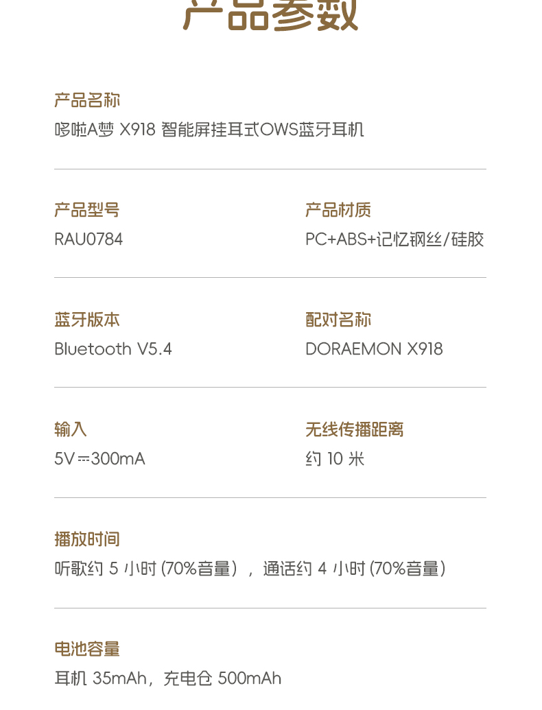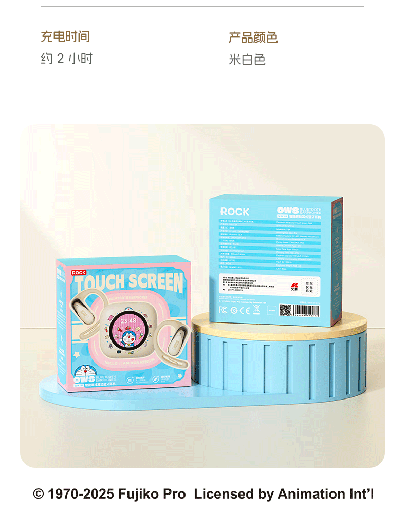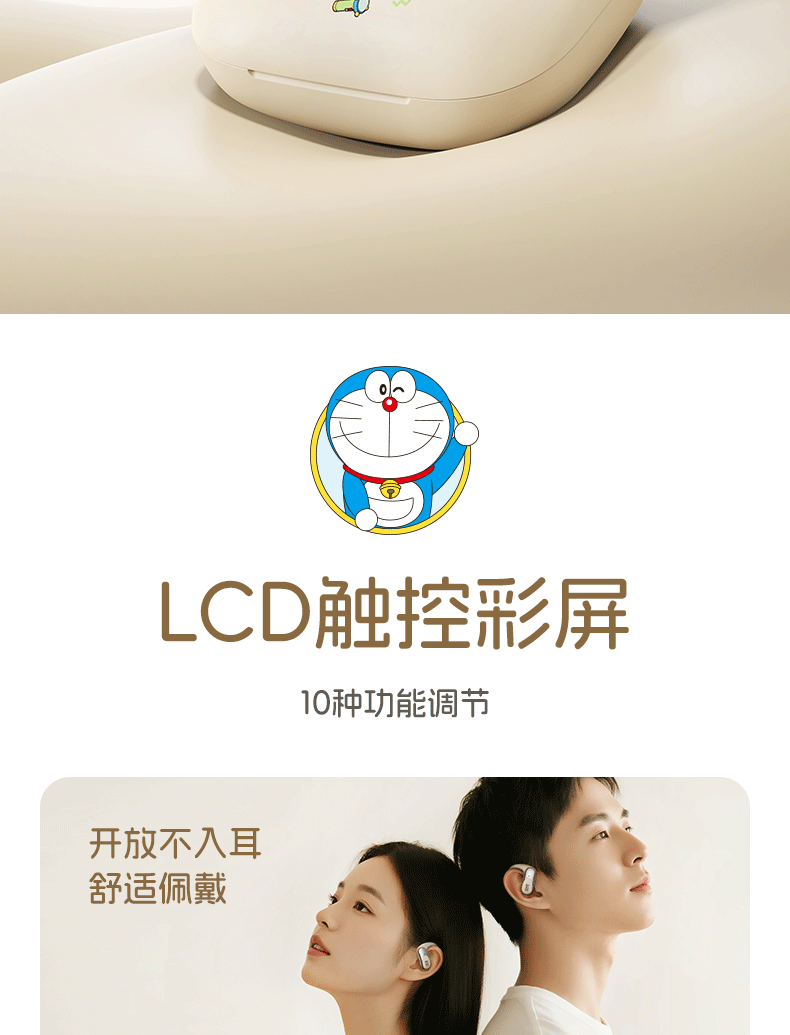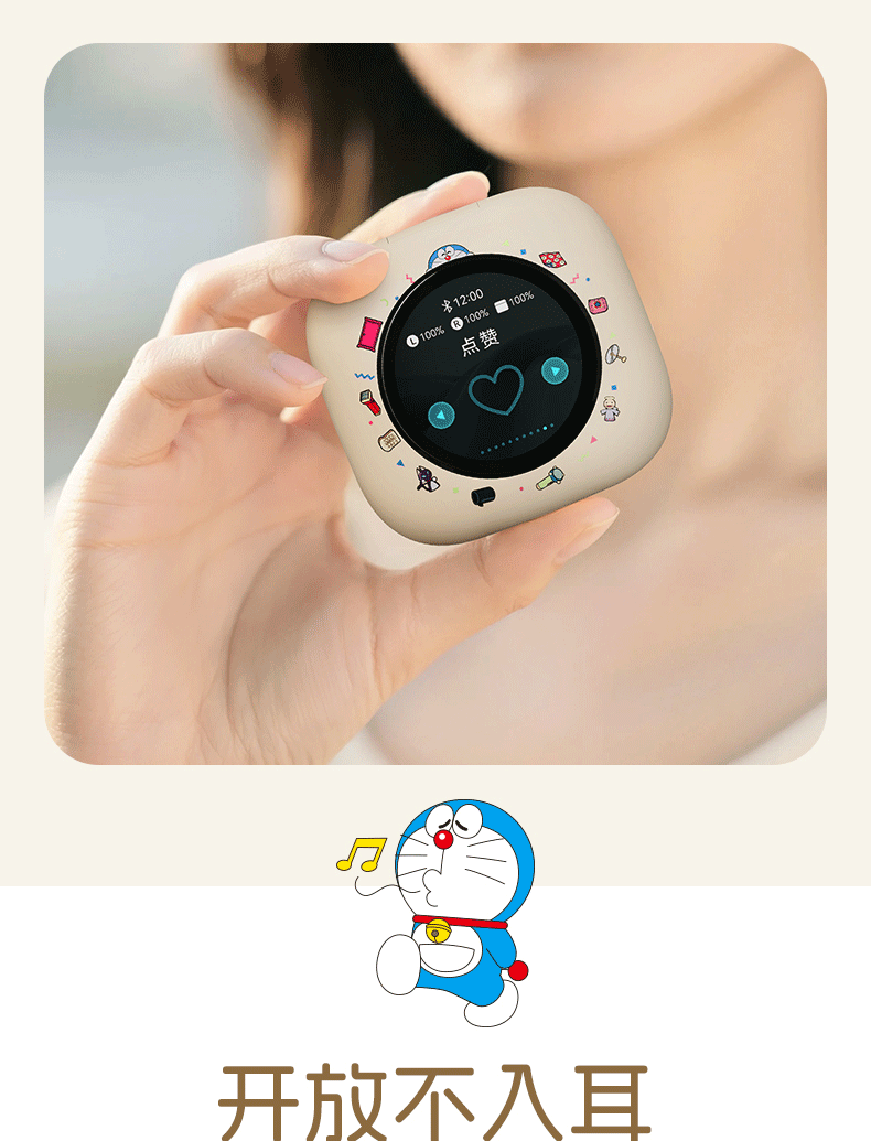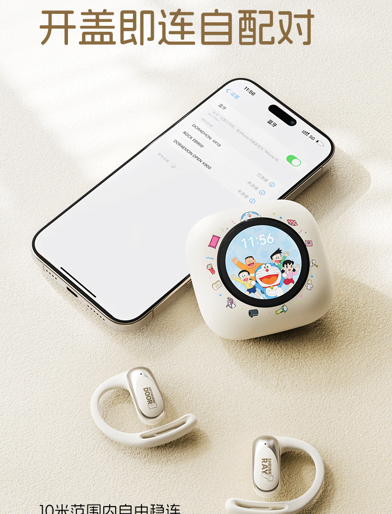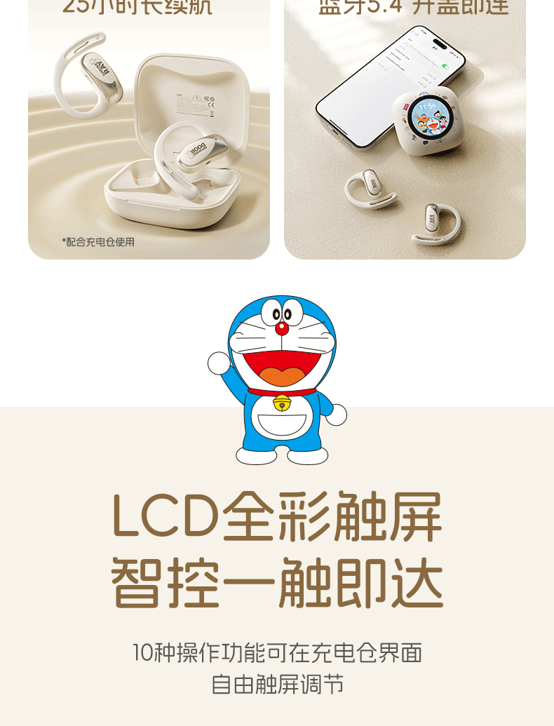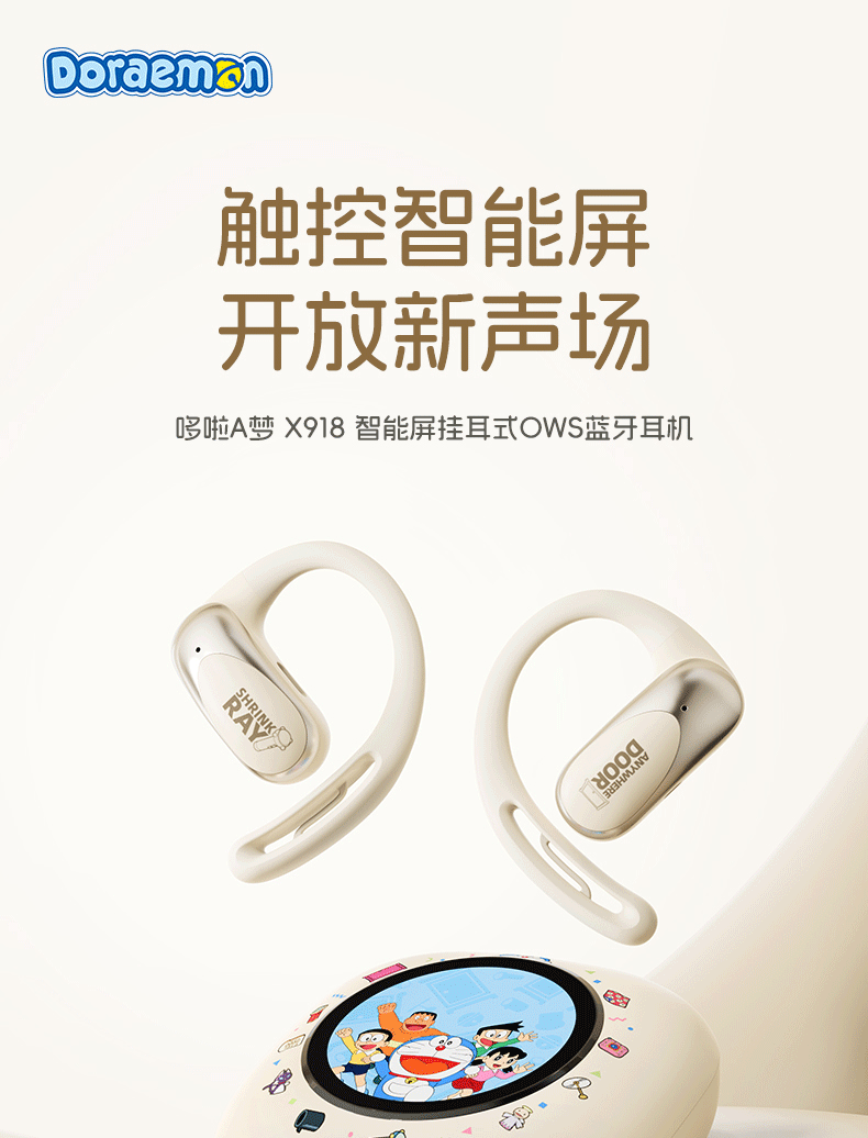 洛克ROCK哆啦A梦耳机X918线蓝牙超长续航挂耳式运动高端彩屏智能触屏