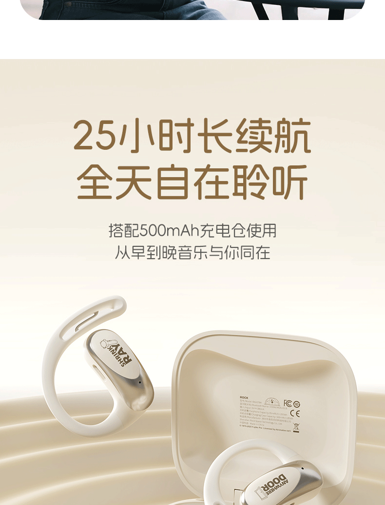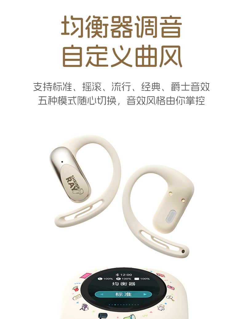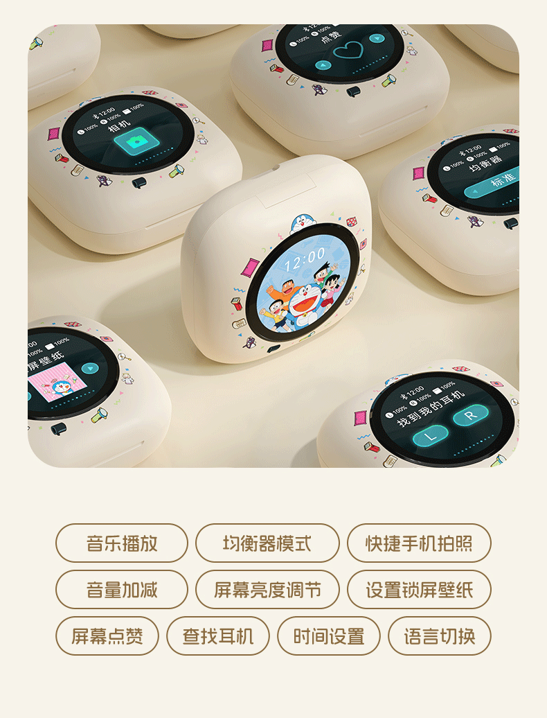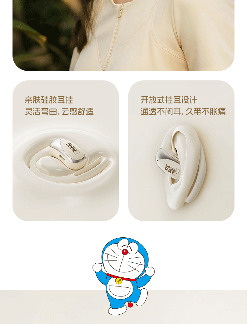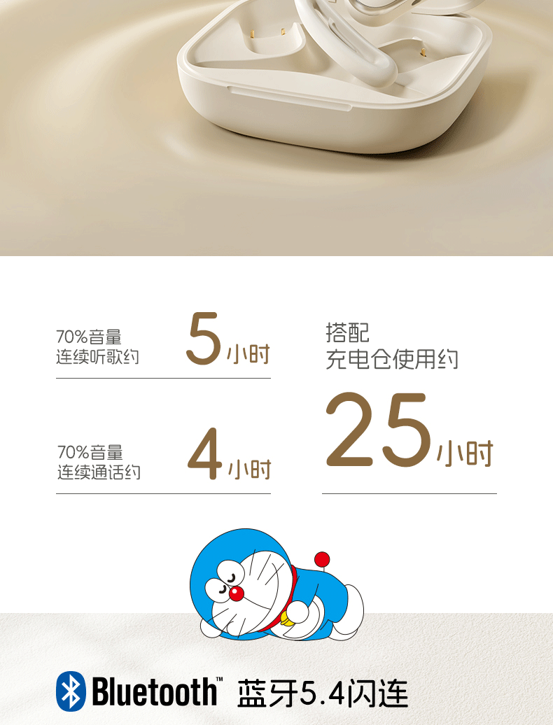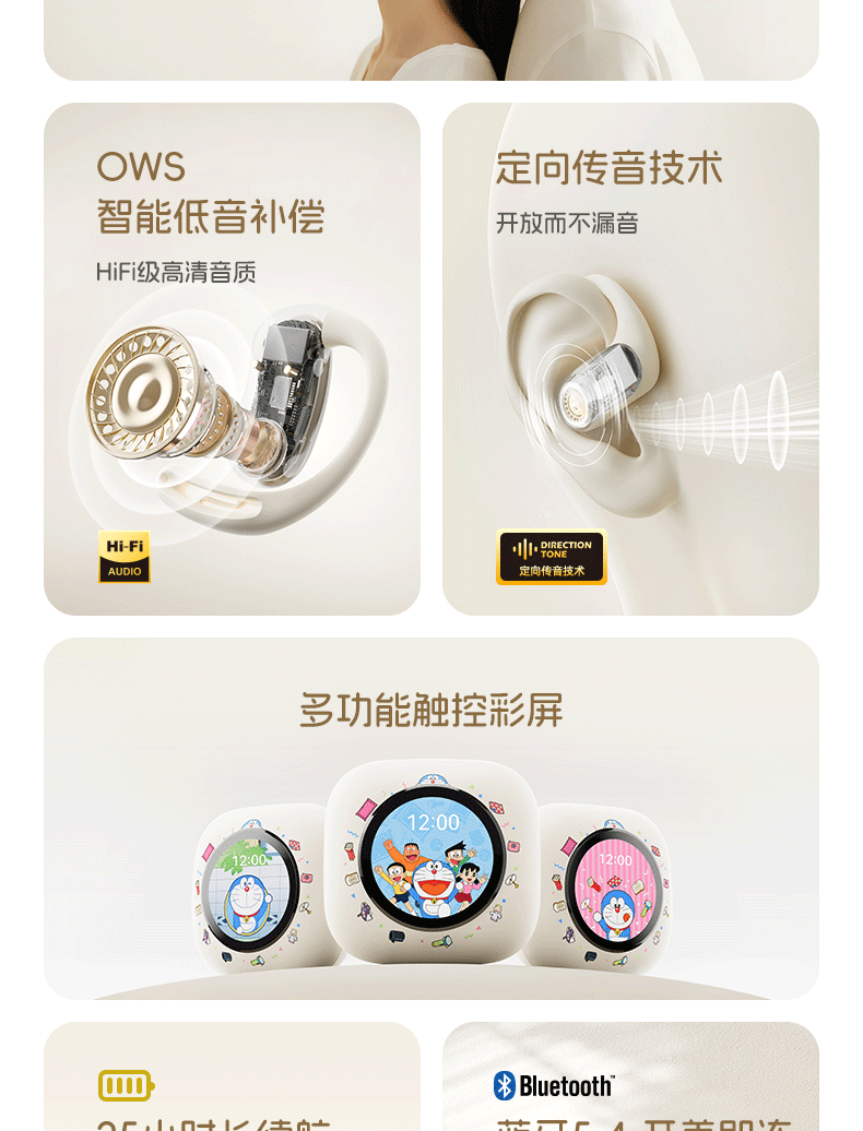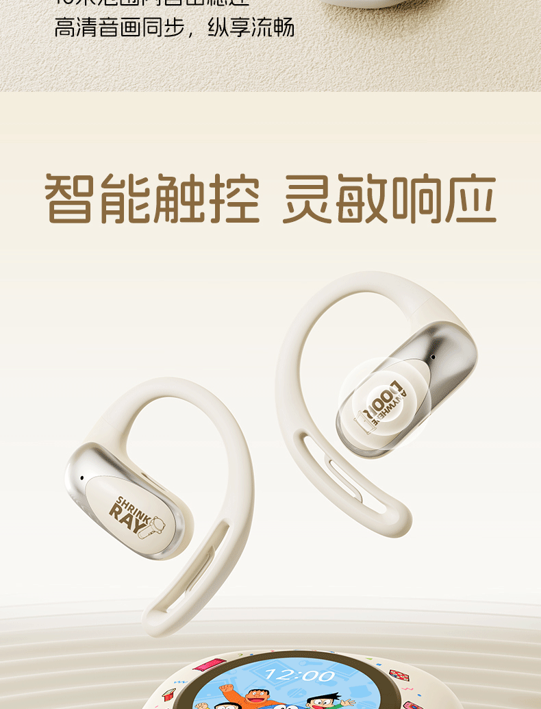 洛克ROCK哆啦A梦耳机X918线蓝牙超长续航挂耳式运动高端彩屏智能触屏