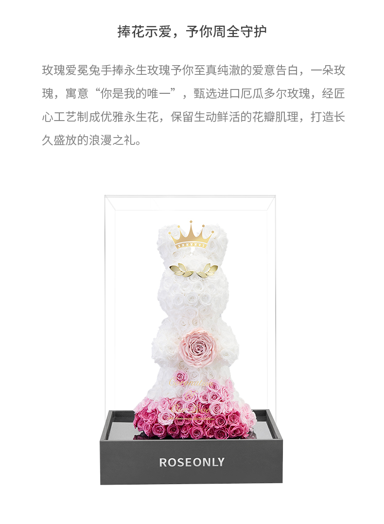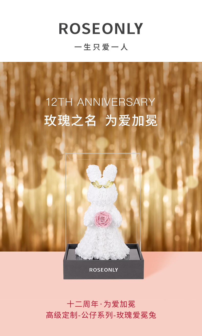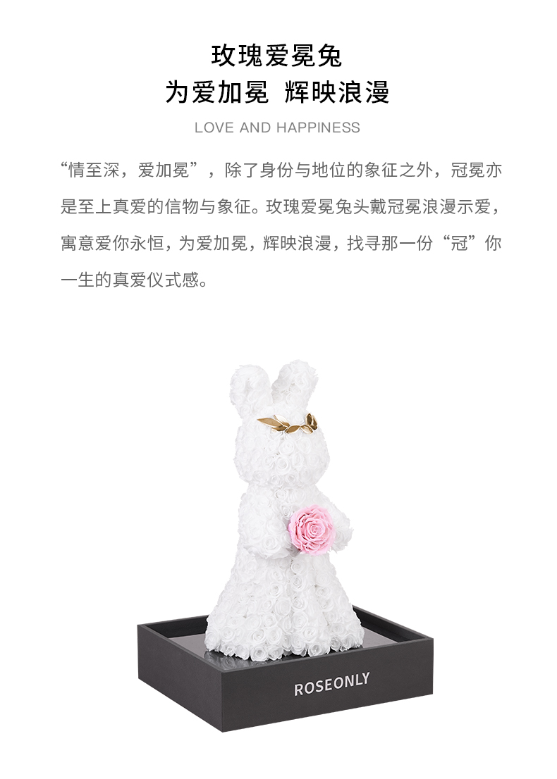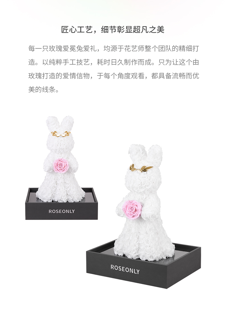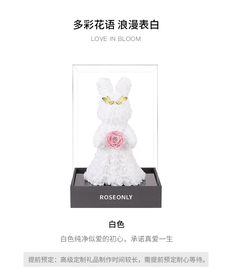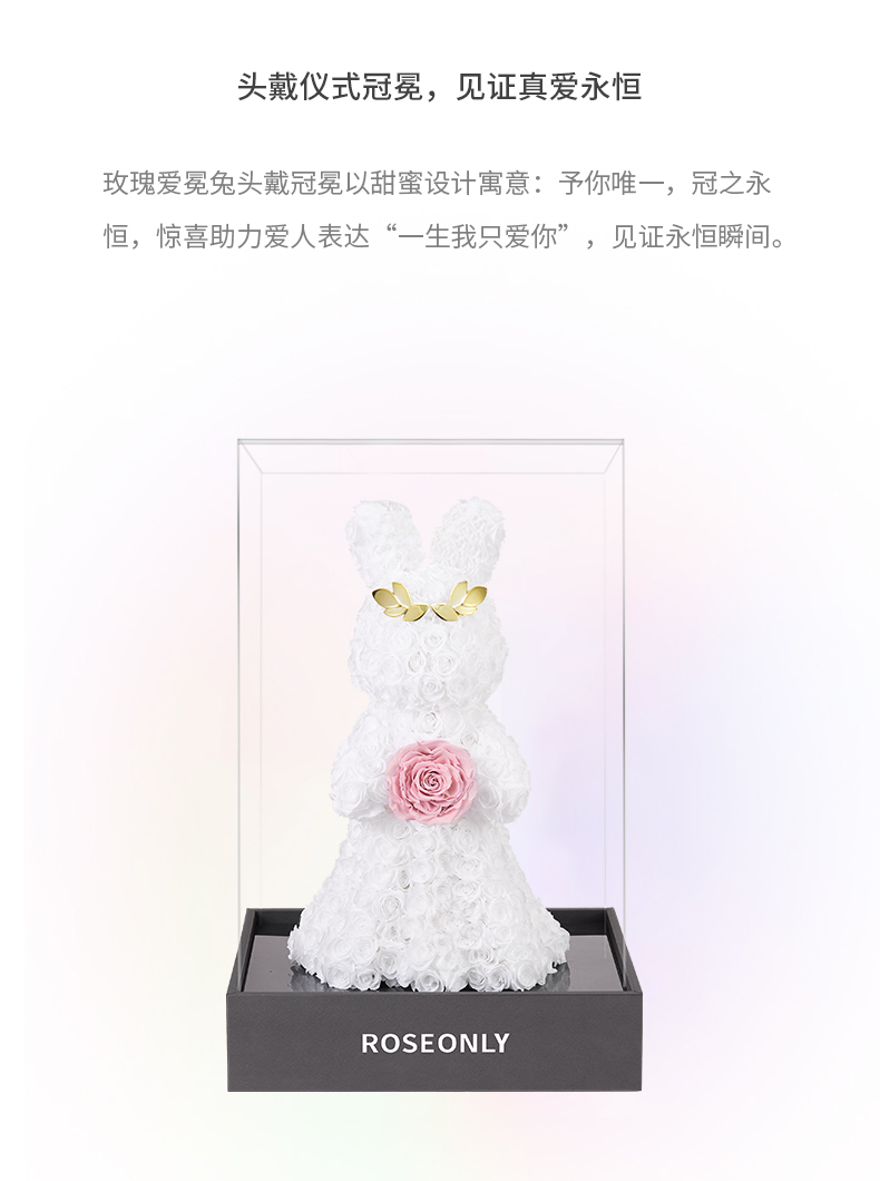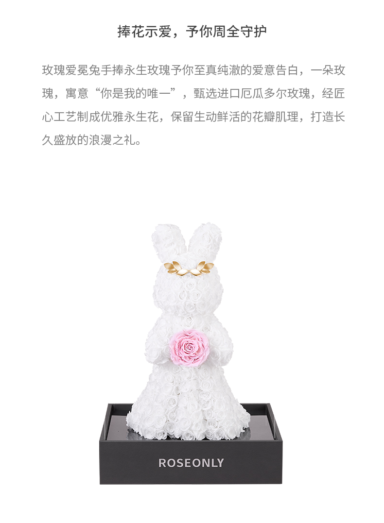【告白神器】ROSEONLY诺誓 高端定制 永生玫瑰 公仔系列 玫瑰爱冕兔 送朋友