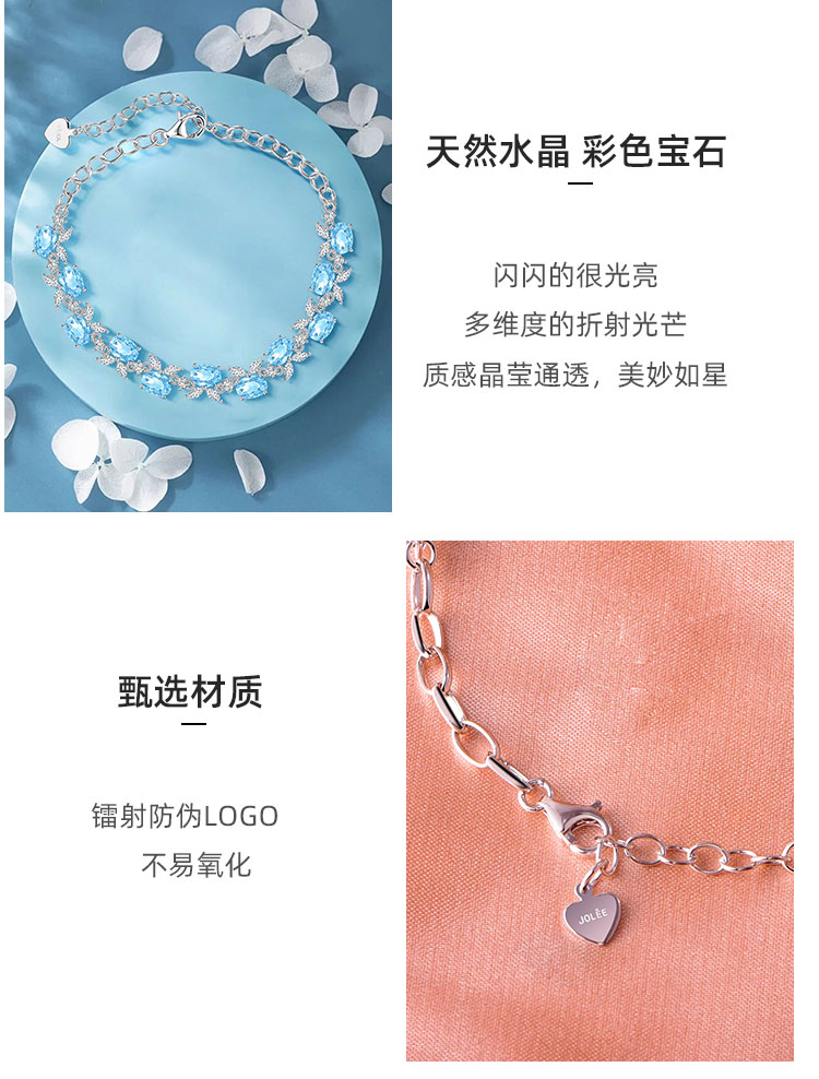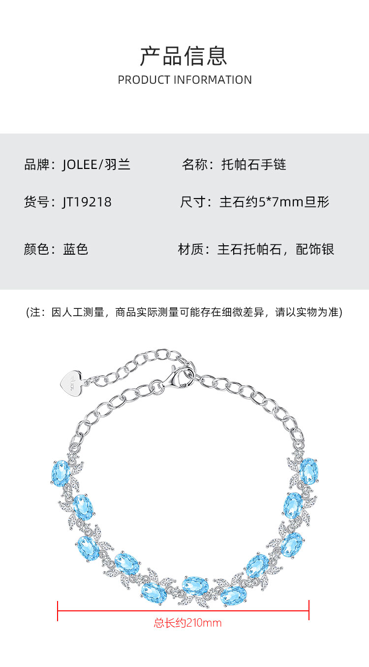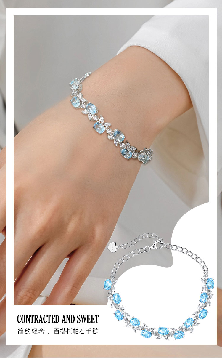 【托帕石手链】S925银托帕石彩色宝石时尚简约首饰品JT19218