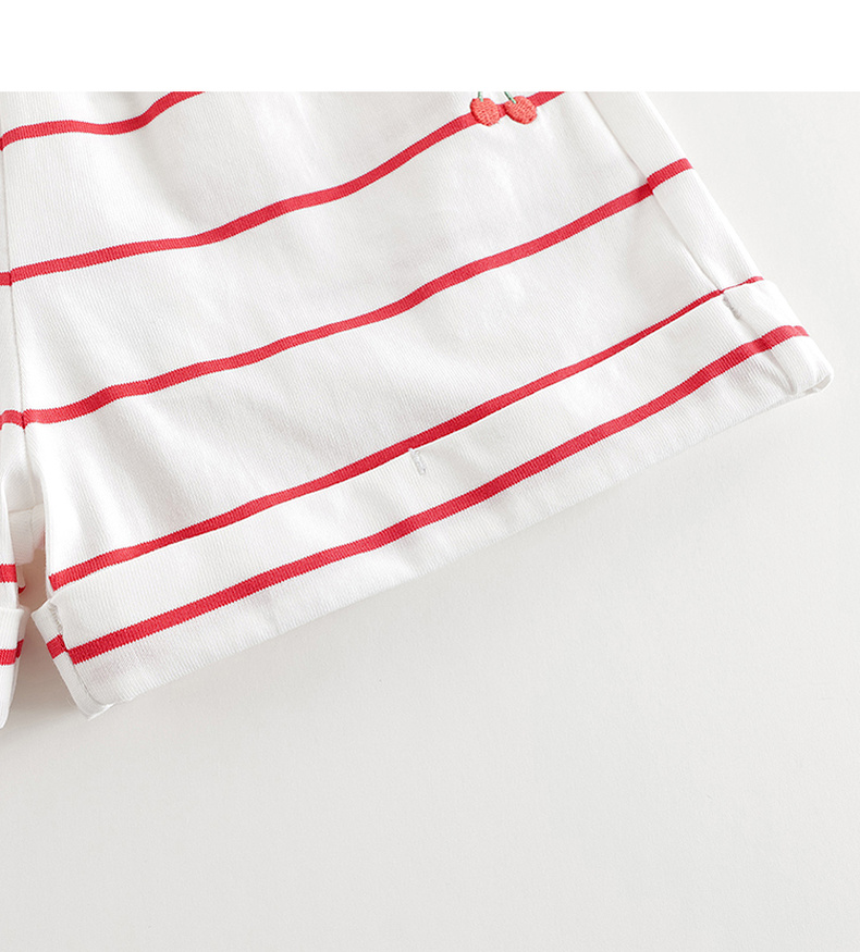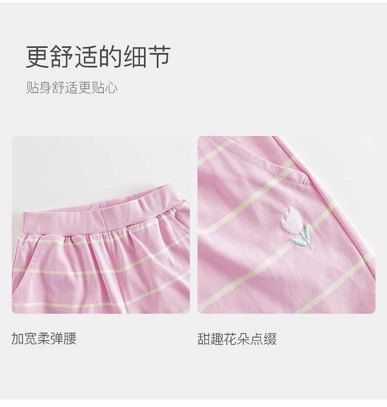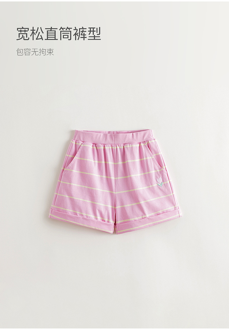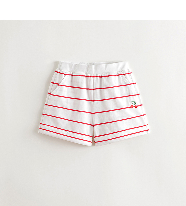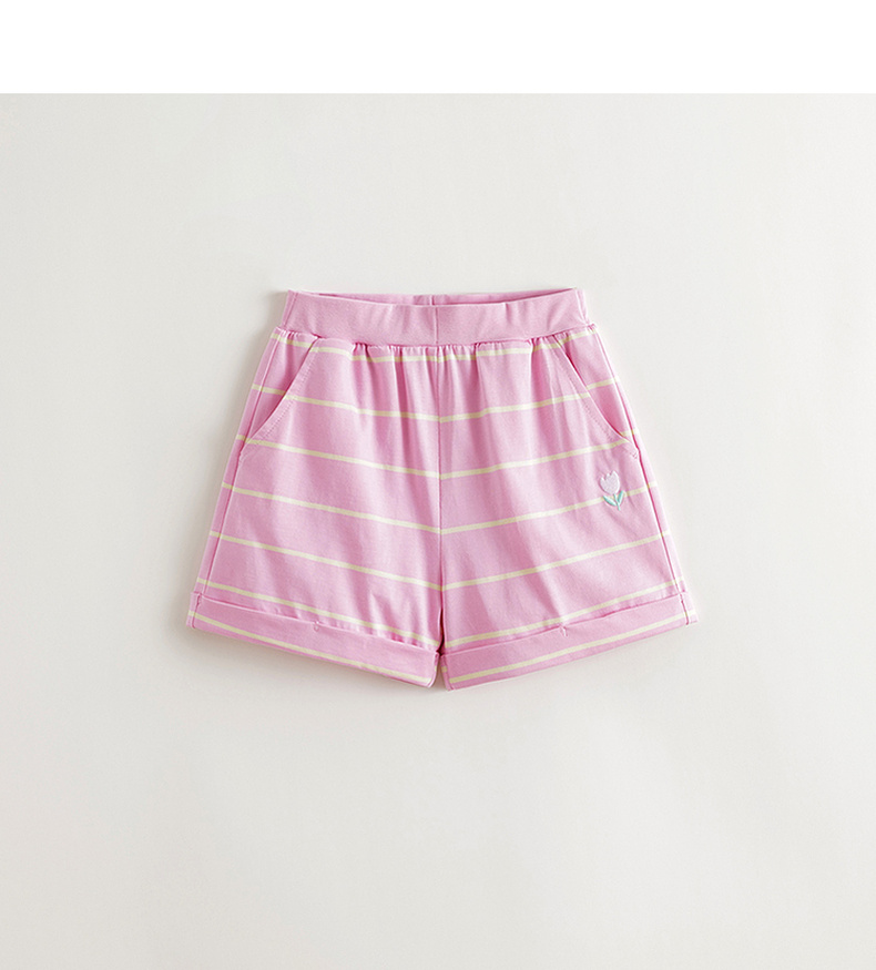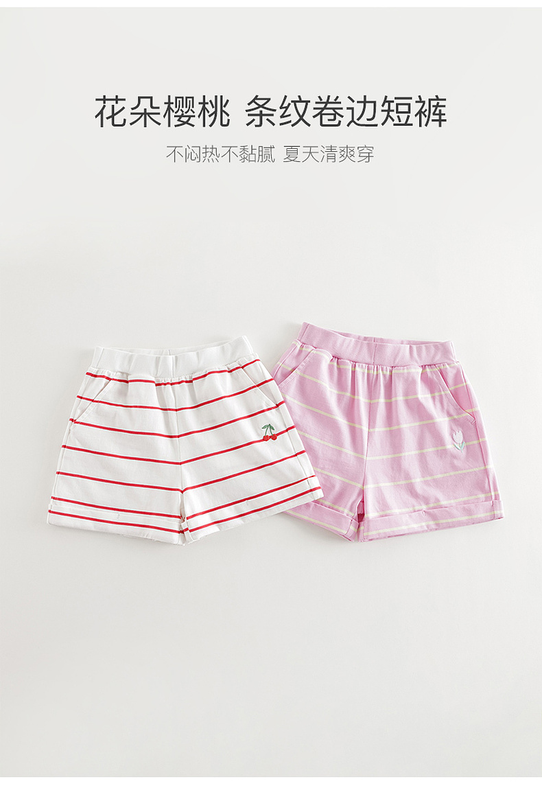马克珍妮女童甜美刺绣条纹卷边短裤儿童裤子2025年夏装新款550697