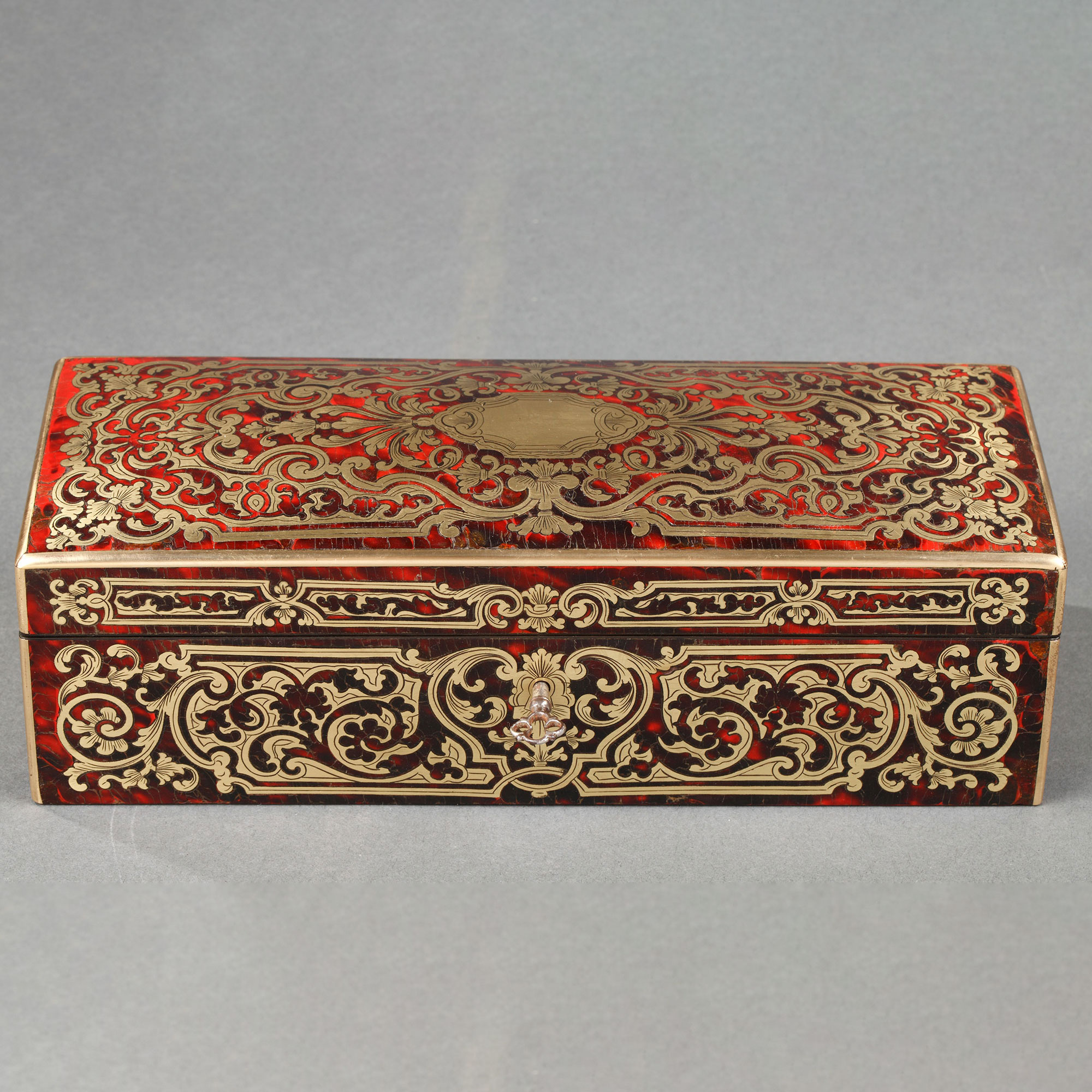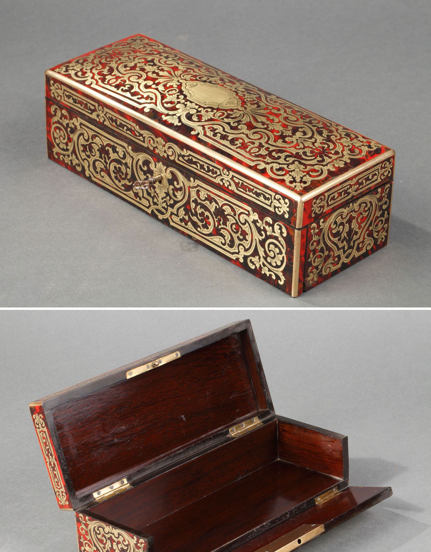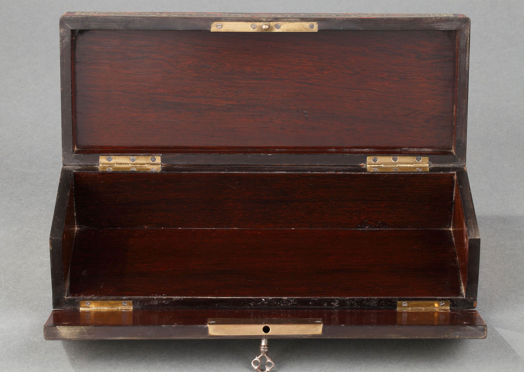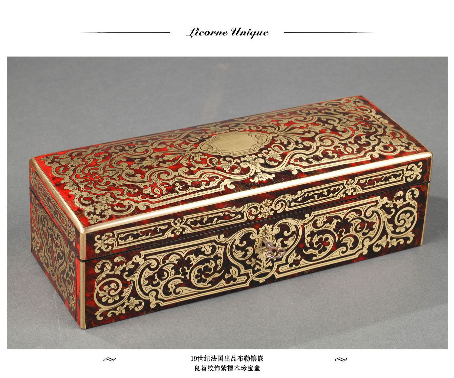 独角鹿西洋古董19世纪法国出品布勒镶嵌良苕纹饰紫檀木珍宝盒