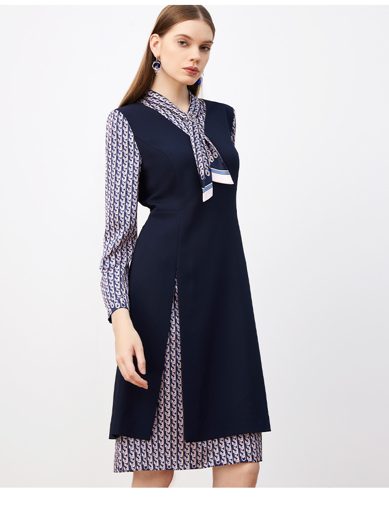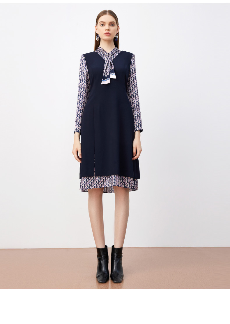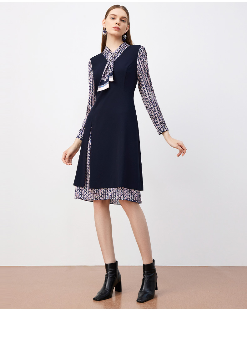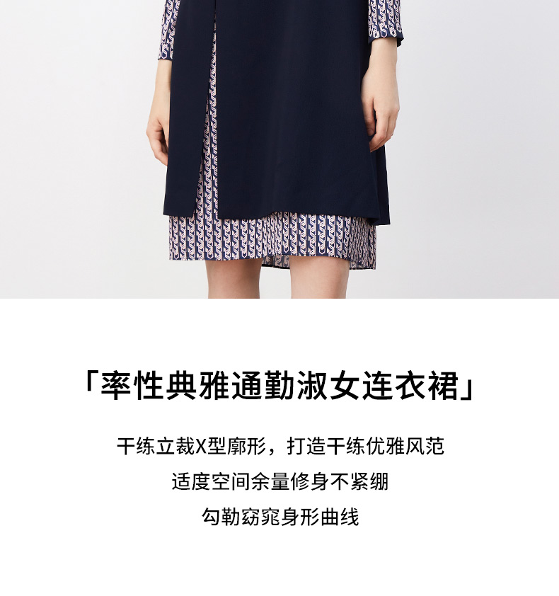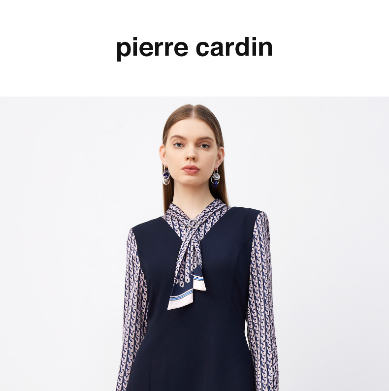 皮尔卡丹女装连衣裙春秋长袖假两件拼接时尚年轻裙子P3317E3889N2