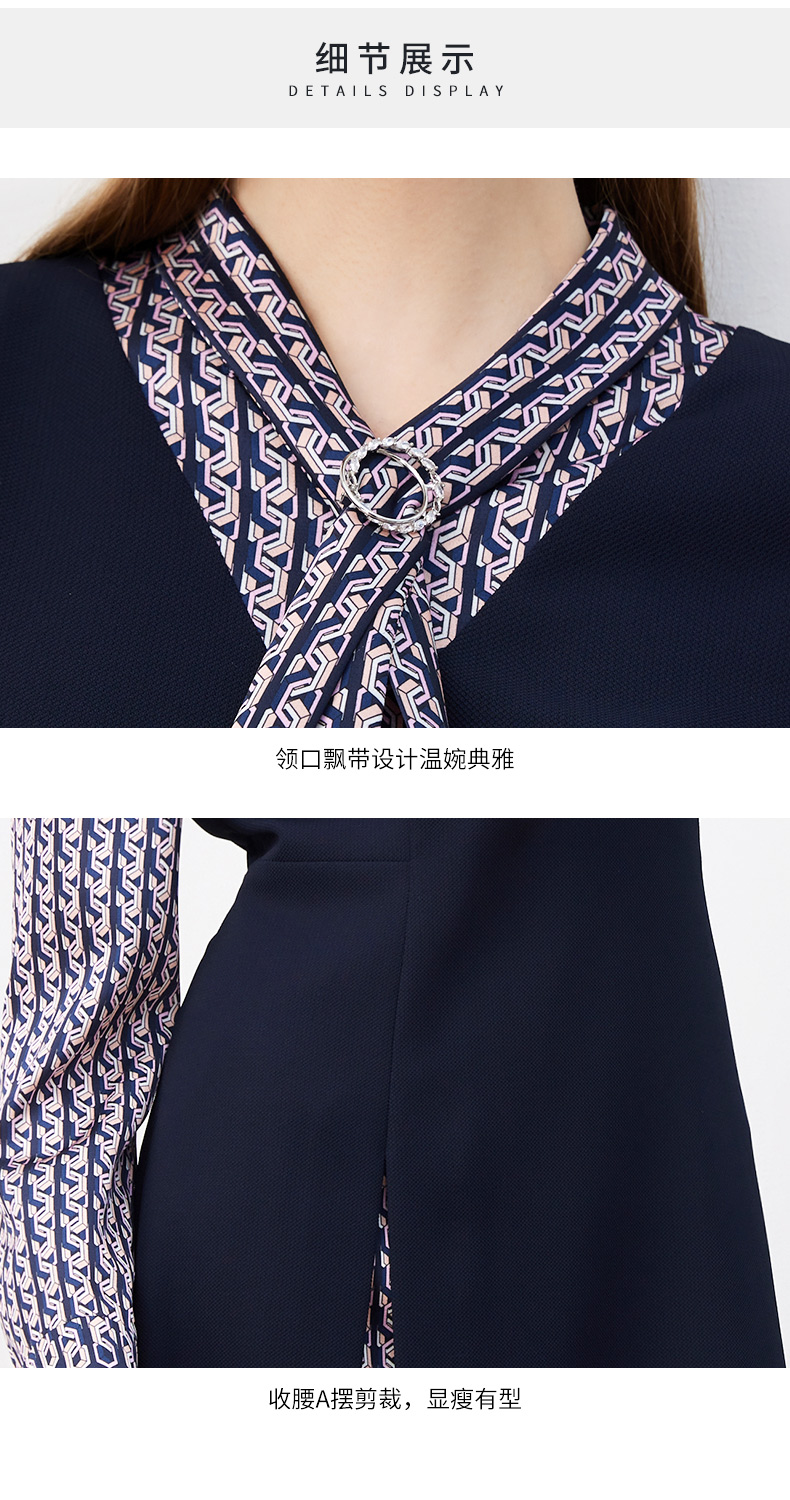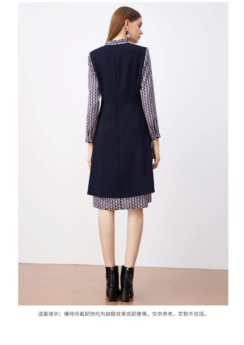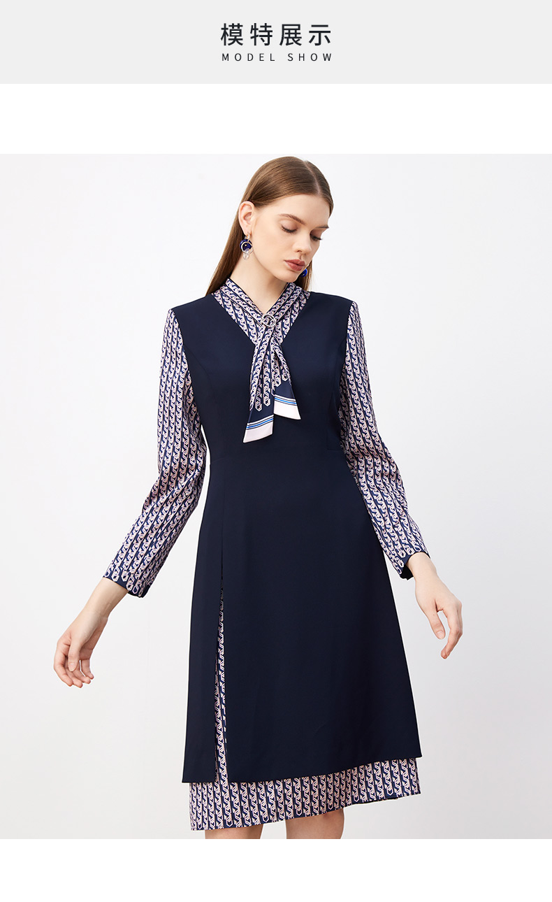 皮尔卡丹女装连衣裙春秋长袖假两件拼接时尚年轻裙子P3317E3889N2
