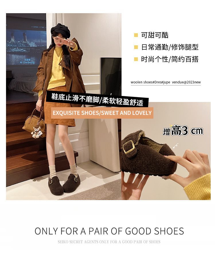【YW】无忧购加绒女一脚蹬平底软底保暖休闲勃肯鞋667(截单后3-5天发货)