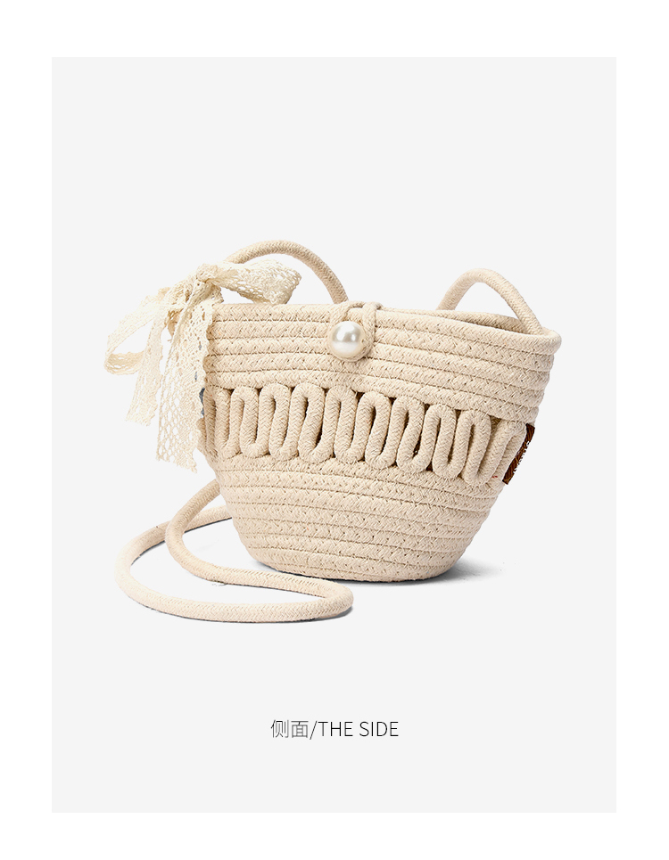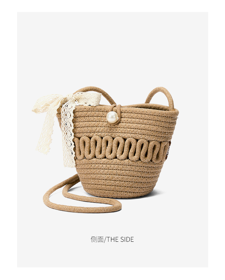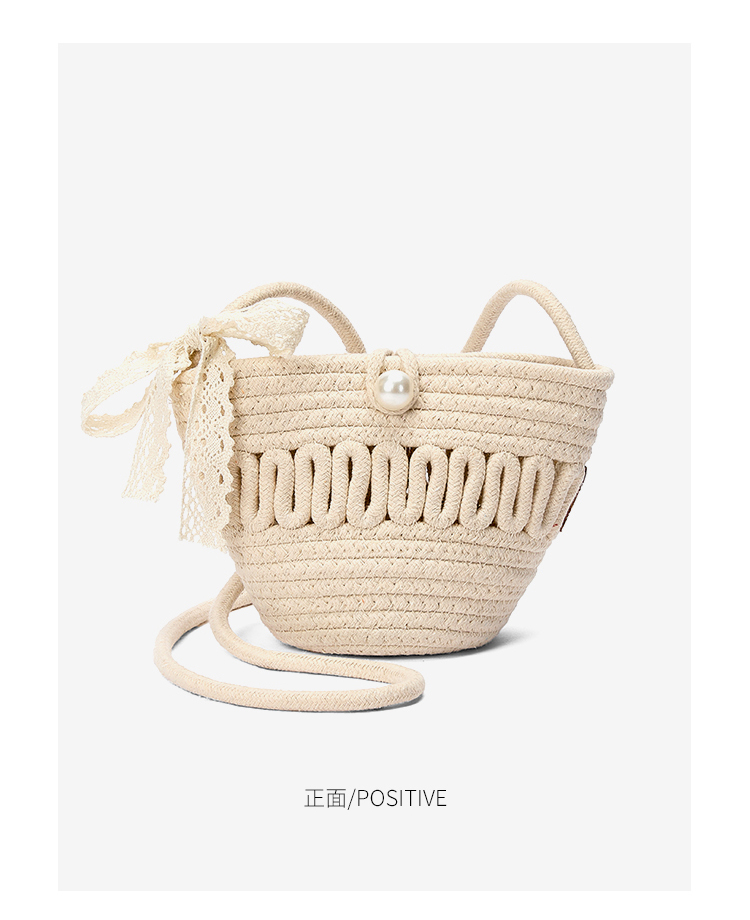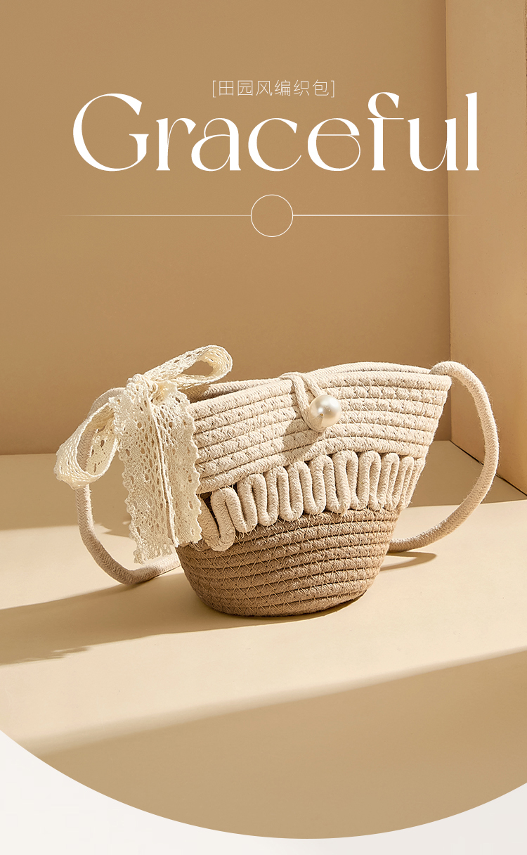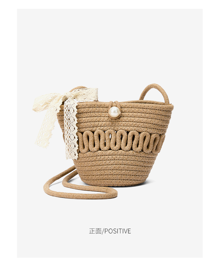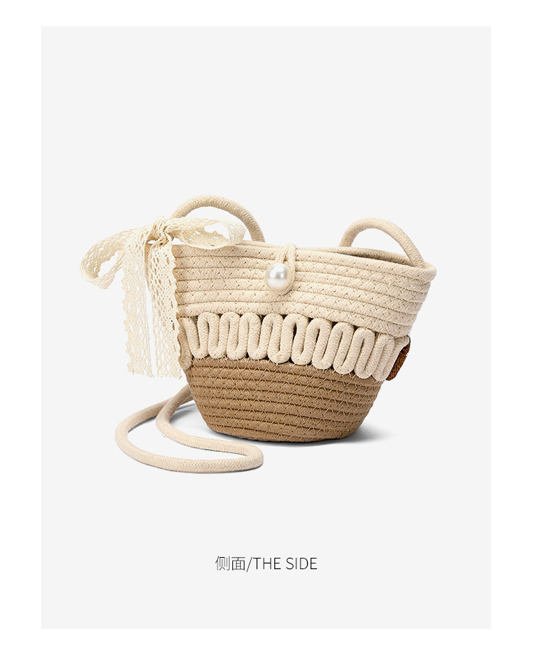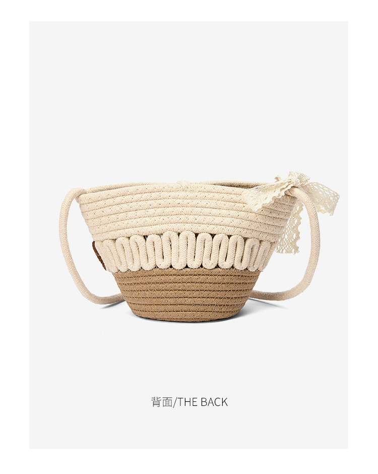星期六森系蕾丝蝴蝶结草编斜挎单肩包SSD521A02X