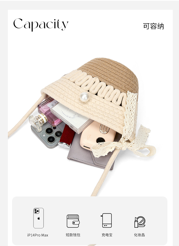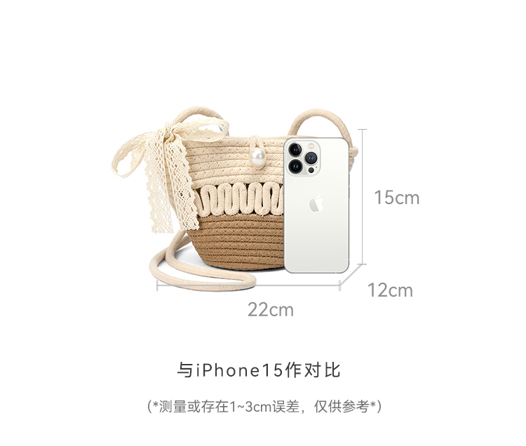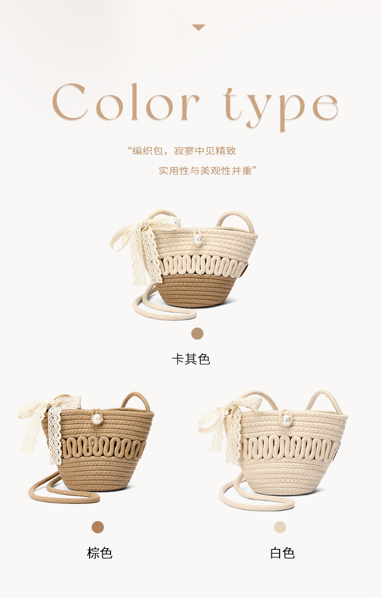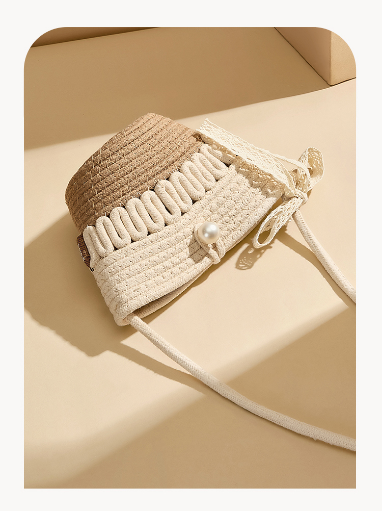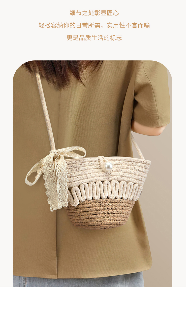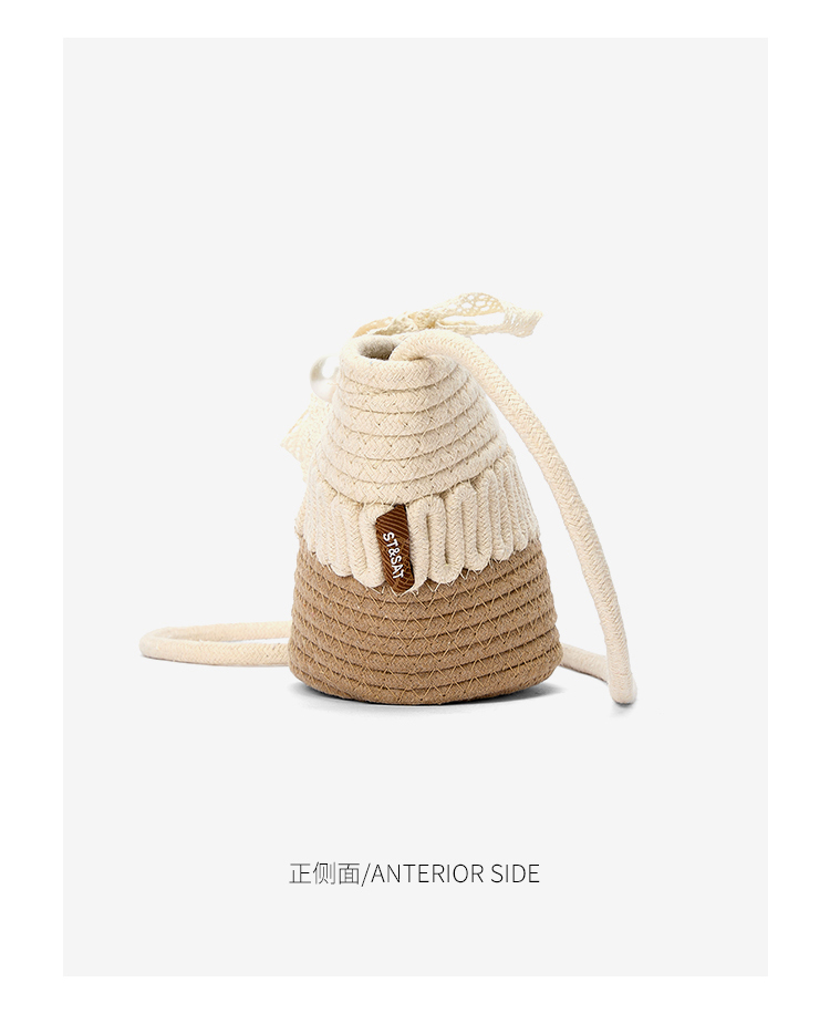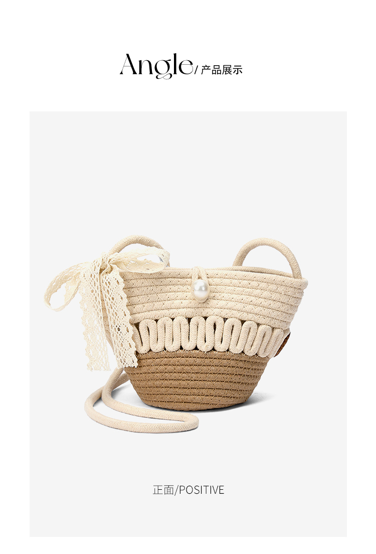 星期六森系蕾丝蝴蝶结草编斜挎单肩包SSD521A02X