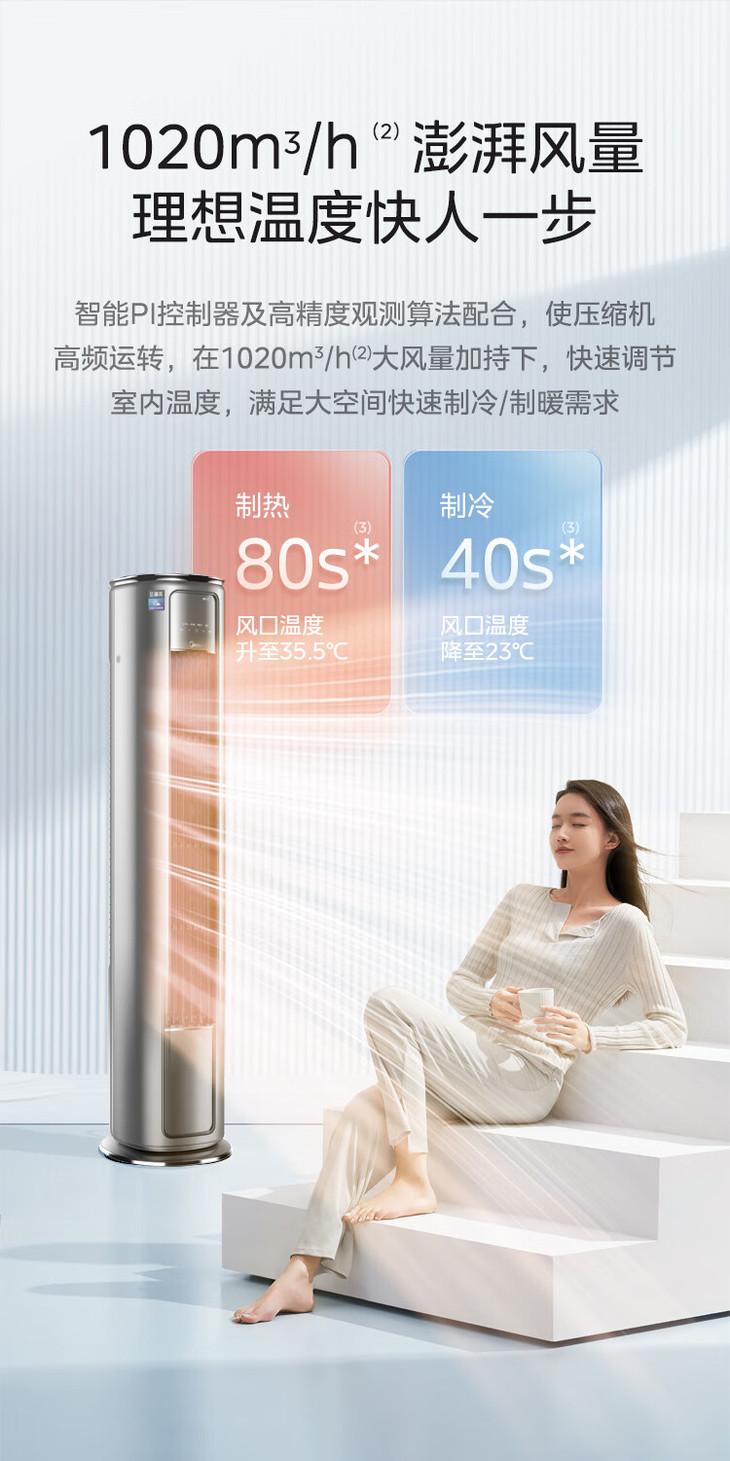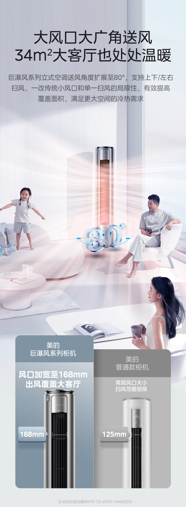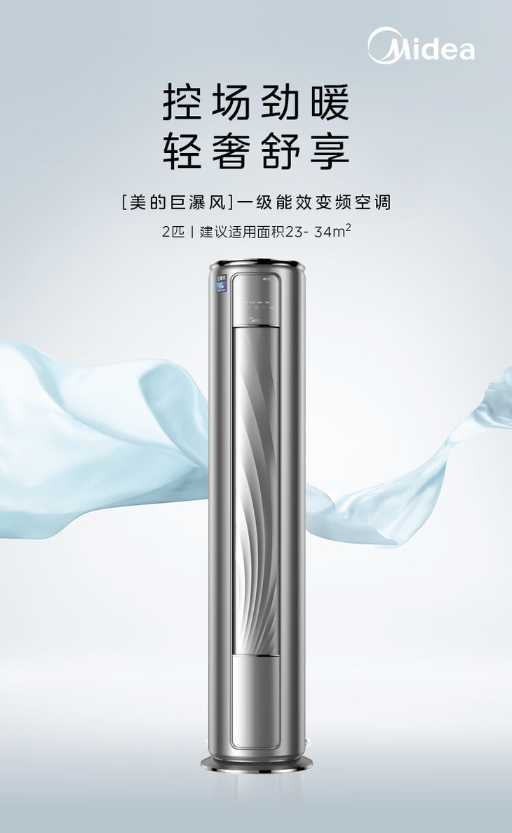 美的(110856)(Midea)美家系列 空调柜机 巨瀑风 新一级全直流变频 智能自清洁 大风口圆柱立式客厅柜机 KFR-72LW/BDN8Y-VC201(1)