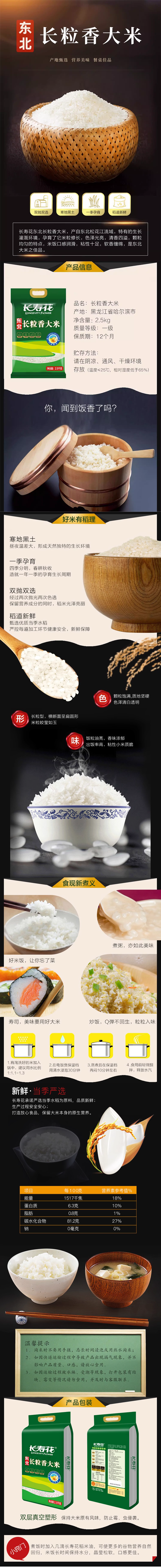 长寿花长粒香大米2.5kg*1袋黑土地东北大米香糯润滑家庭适用装