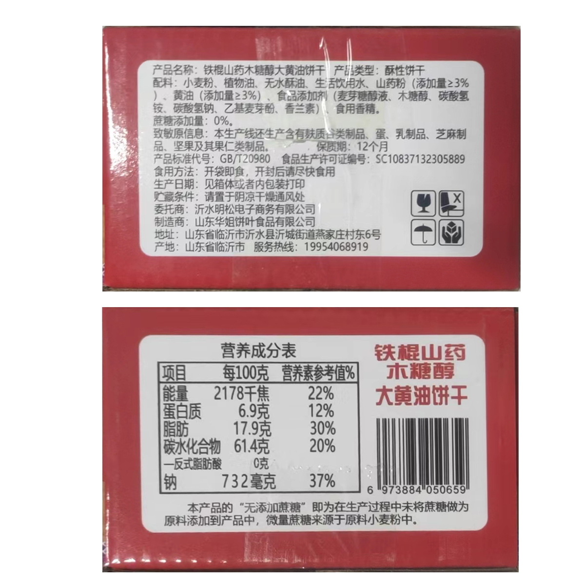 思华梦无添加蔗糖铁棍山药大黄油饼干10盒美味装