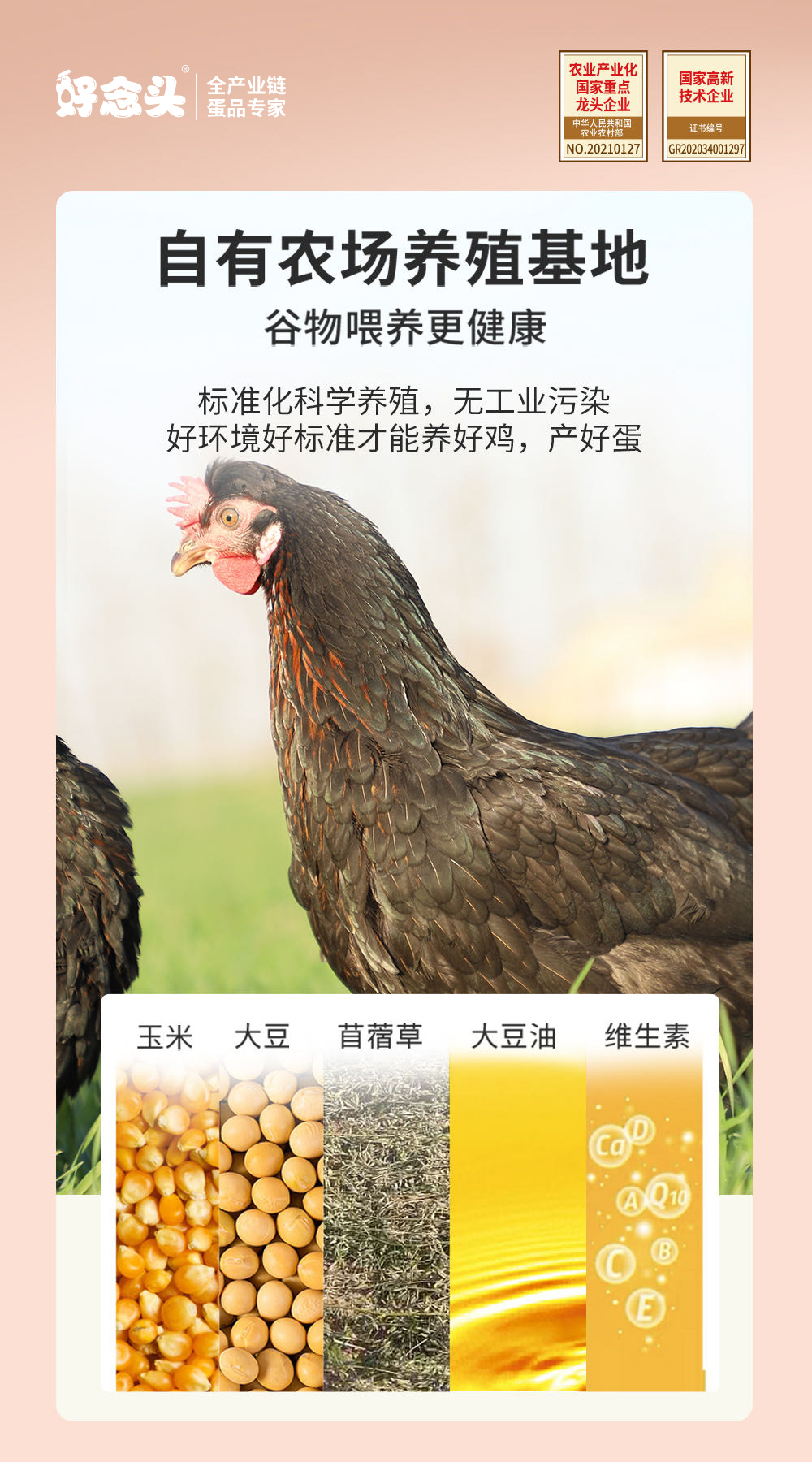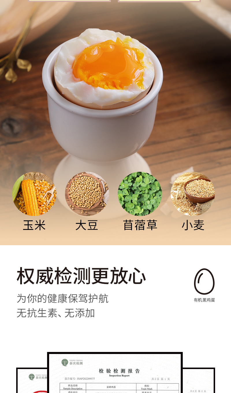 使用玉米、大豆、苜蓿草科学谷物喂养,产蛋日龄150天,鸡蛋营养价值汇聚更多