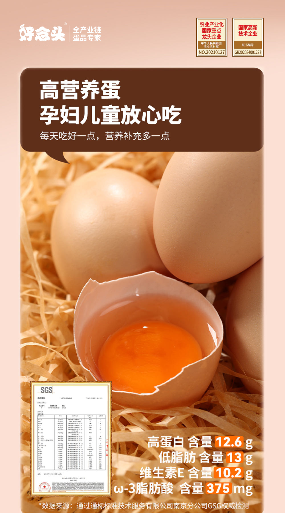 营养:36.5%占比橘黄大蛋黄,12.6g高蛋白、低脂肪,含丰富卵磷脂