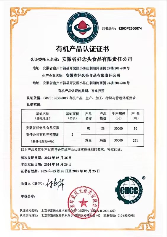 不仅是鸡和鸡蛋通过中国有机认证,小麦和玉米也通过中国有机认证