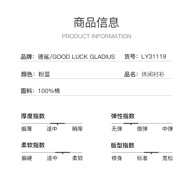 GOOD LUCK GLADIUS品牌由“浙江德鲨服饰有限公司”引进中国市场,经过多年发展,凭借完善的终端形象,规范化的销售管理,迅速赢得消费者的认可,引领国内消费流行,是成功人士首选男装品牌。