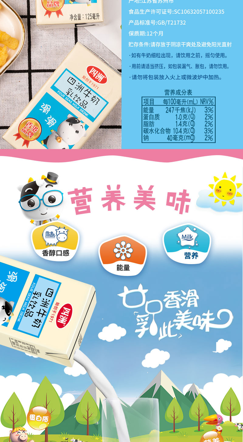 四洲牛奶乳饮品125ml*36盒整箱