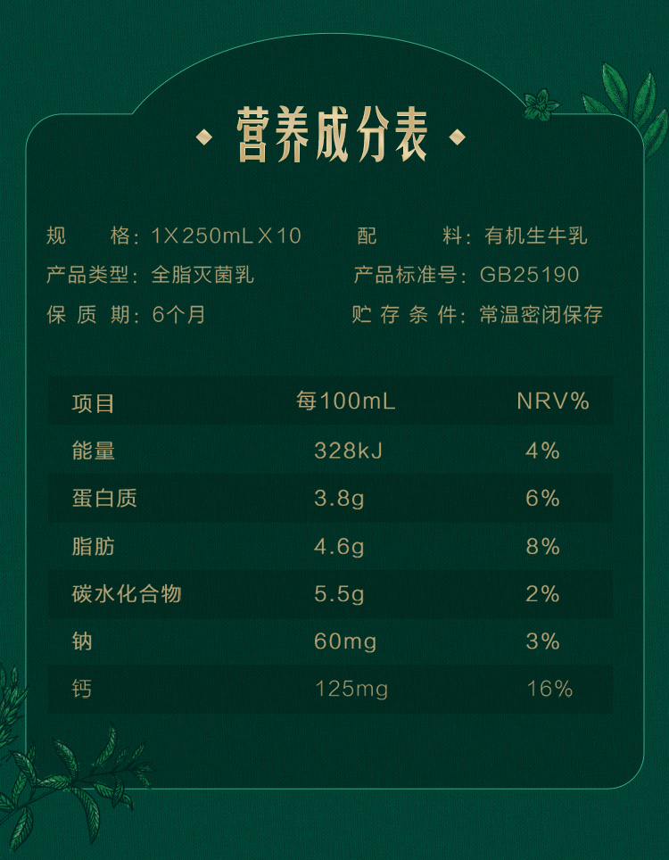 蒙牛特仑苏沙漠有机纯牛奶250ml*10盒(4.0g优质乳蛋白)礼盒装