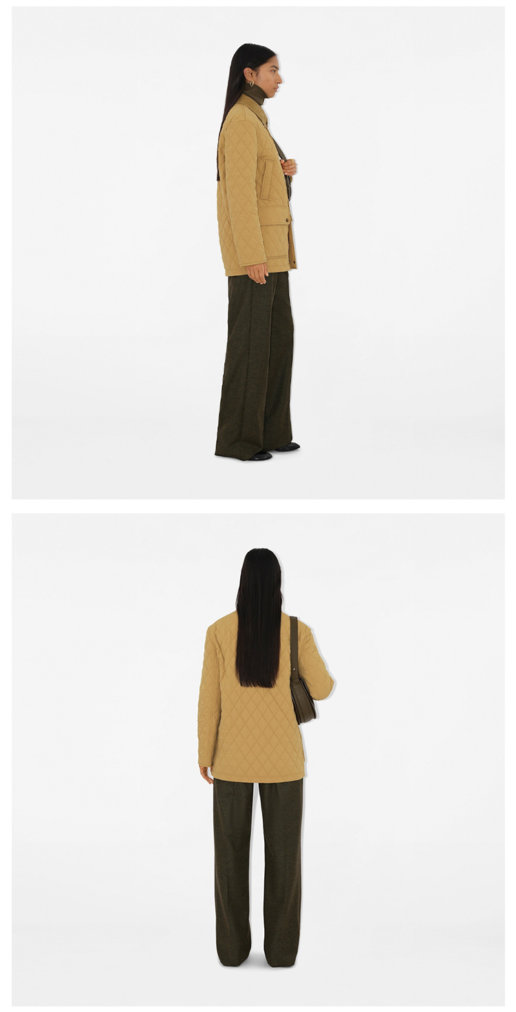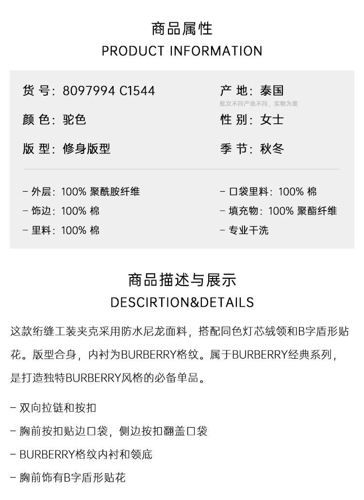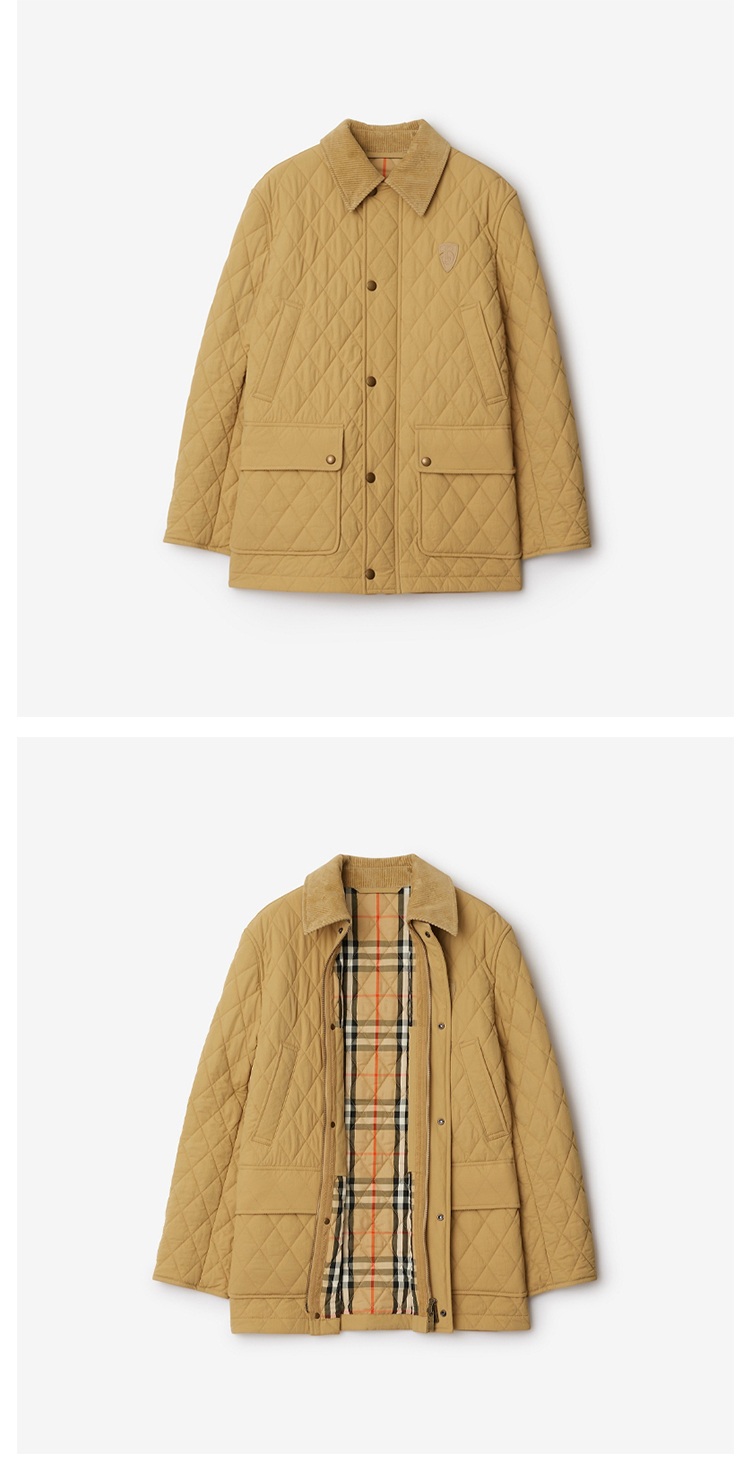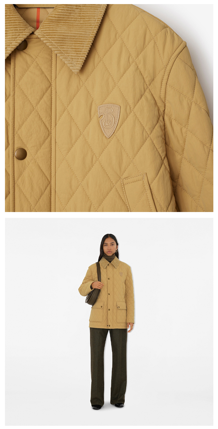 【一】BURBERRY 巴宝莉 女士 B 字盾牌徽标贴片绗缝尼龙谷仓夹克棉服 驼色 8097994 C1544