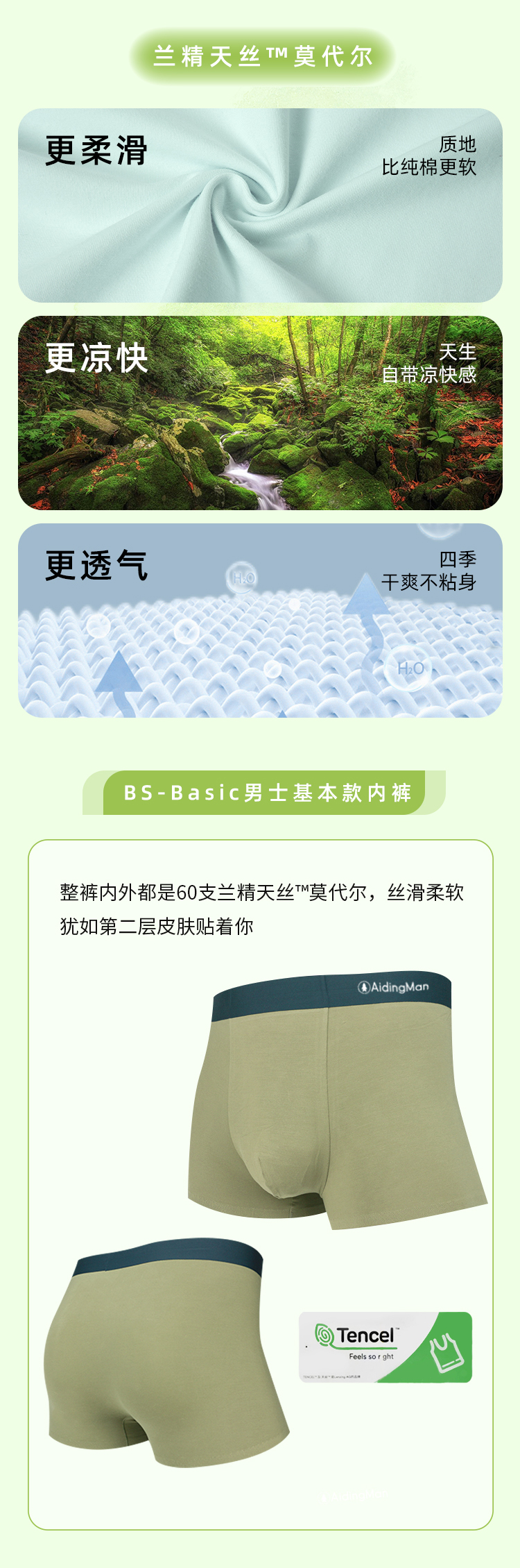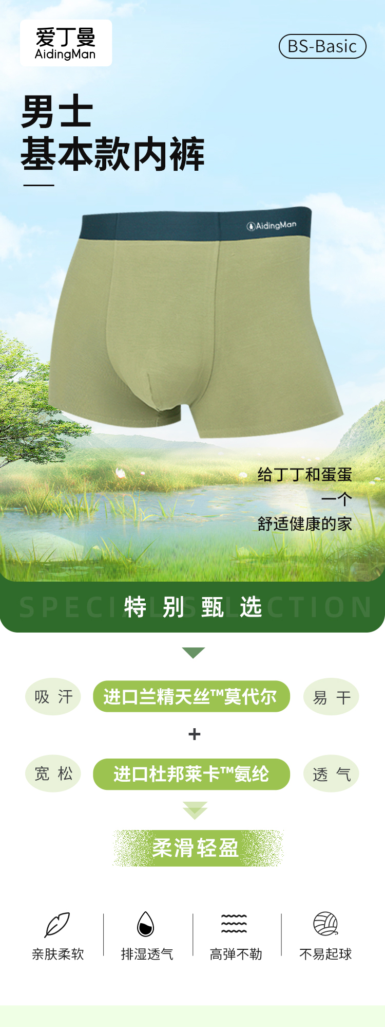 BS-Basic男士基本款内裤 3条装 进口面料 兰精莫代尔 柔软透气 四季皆宜 舒适不勒 无痕压边 随单送《蛋蛋保养操与男士私护指南》课程兑换卡