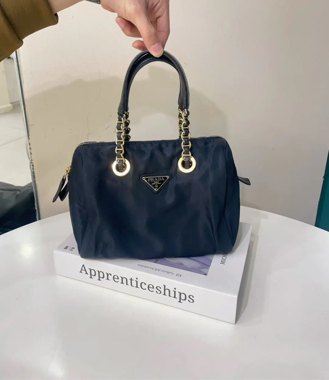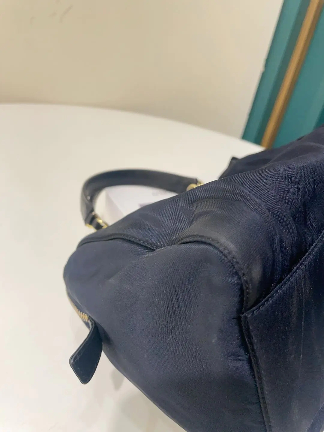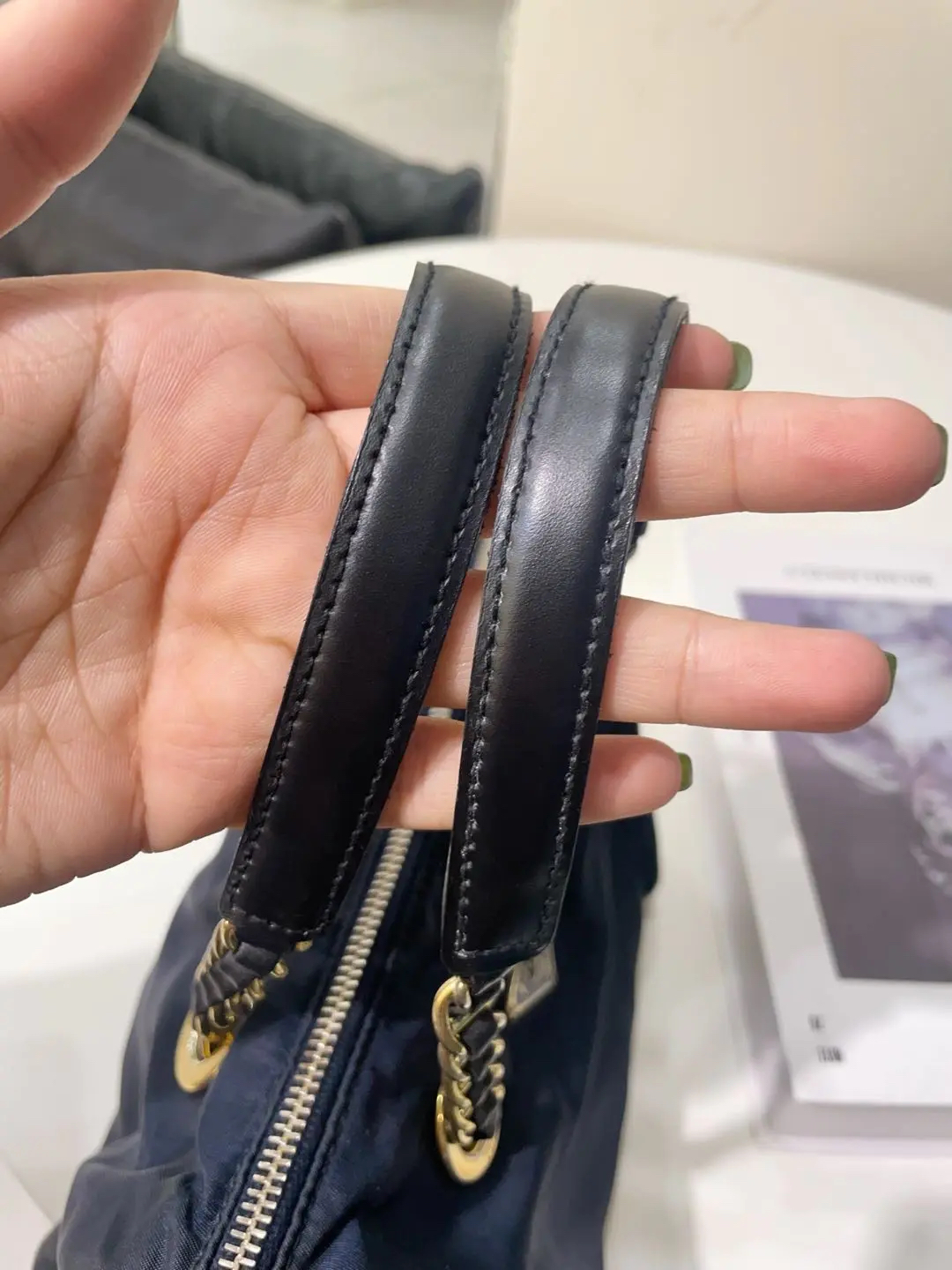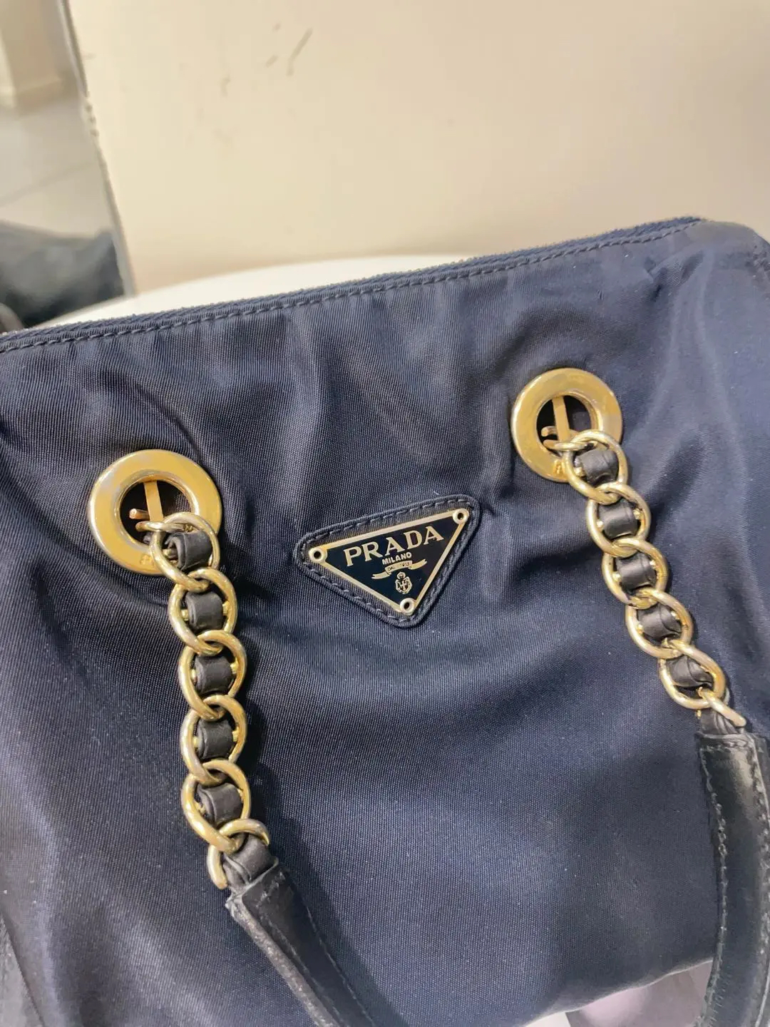 【商品详情】正品二手 prada 小号 黑金 降落伞布 波士顿包🖲️ 9新 21×17 包身使用脏 五金与链条配皮部分磨损与氧化 内里拉链头配皮正常磨损感 内里刺绣轻微脱丝 超级性价比捡漏款