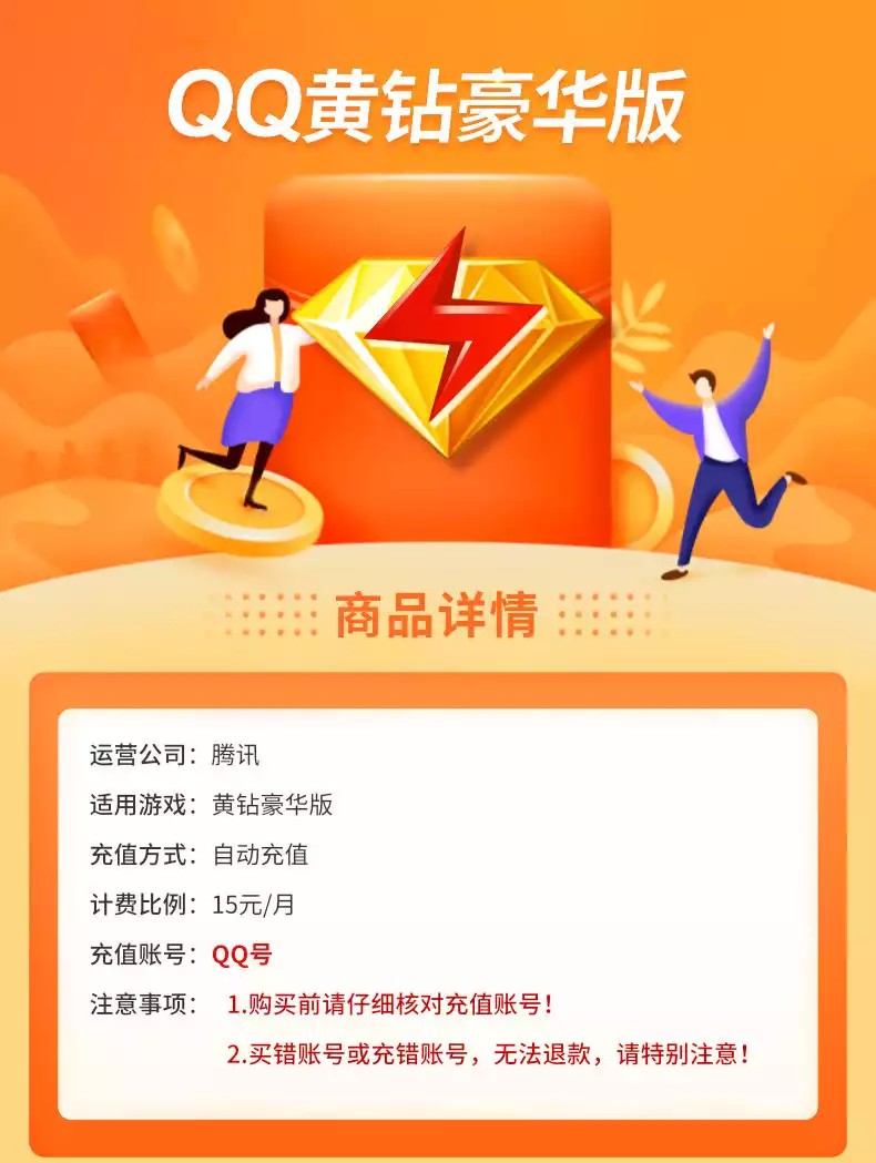 QQ黄钻豪华版年卡直充 自动充值