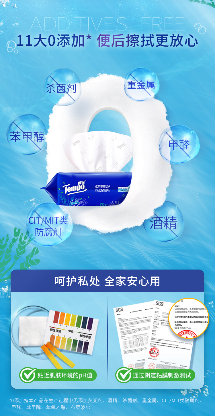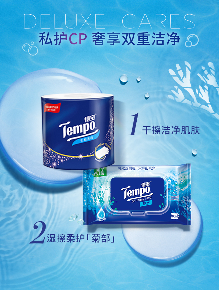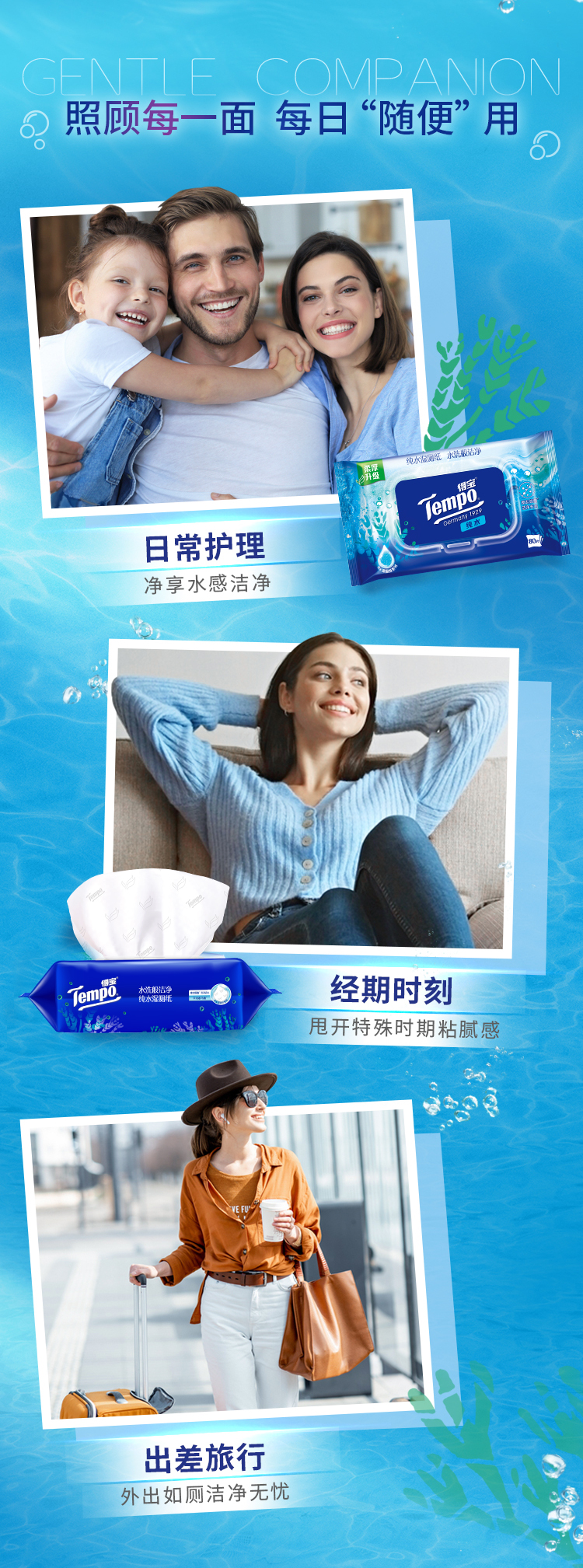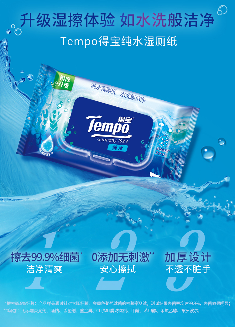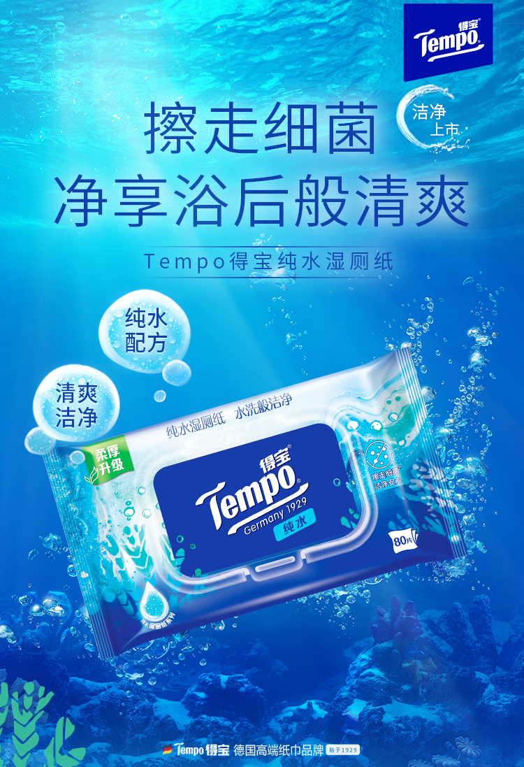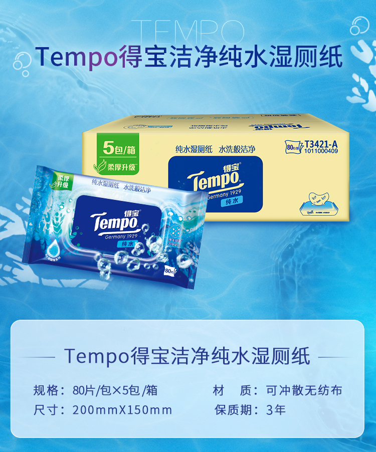 f『得宝Tempo』 纯水湿厕纸40片/包x4包 净享清爽洁净/ 厕用湿巾