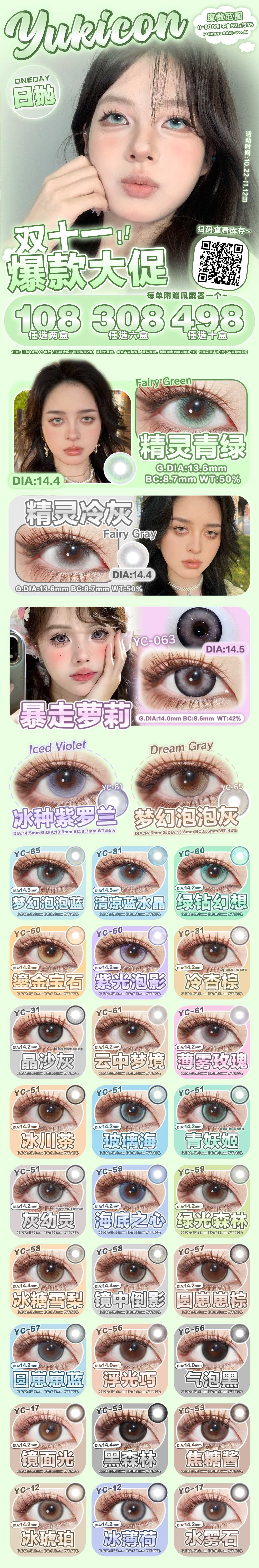 镜片材质: 含非离子或者含硅水凝胶日抛,款式不同材质不同