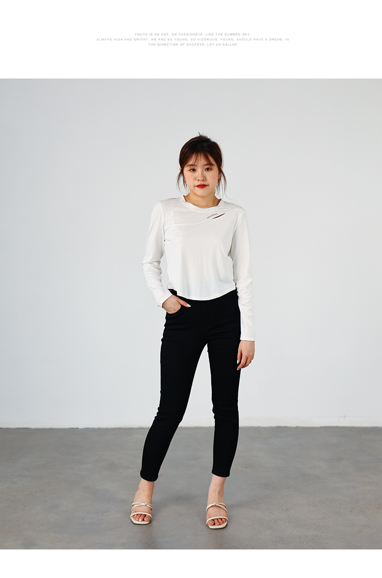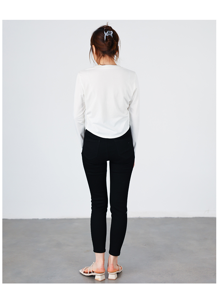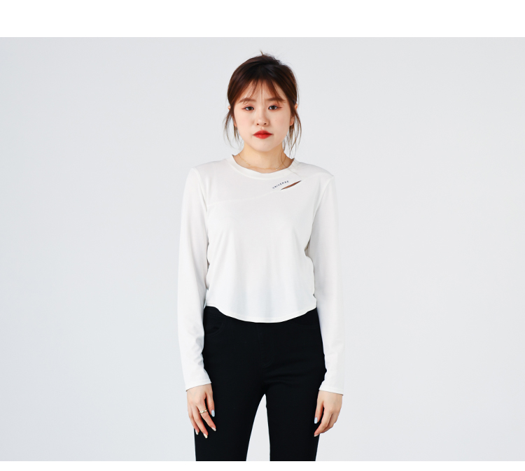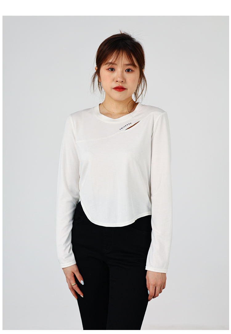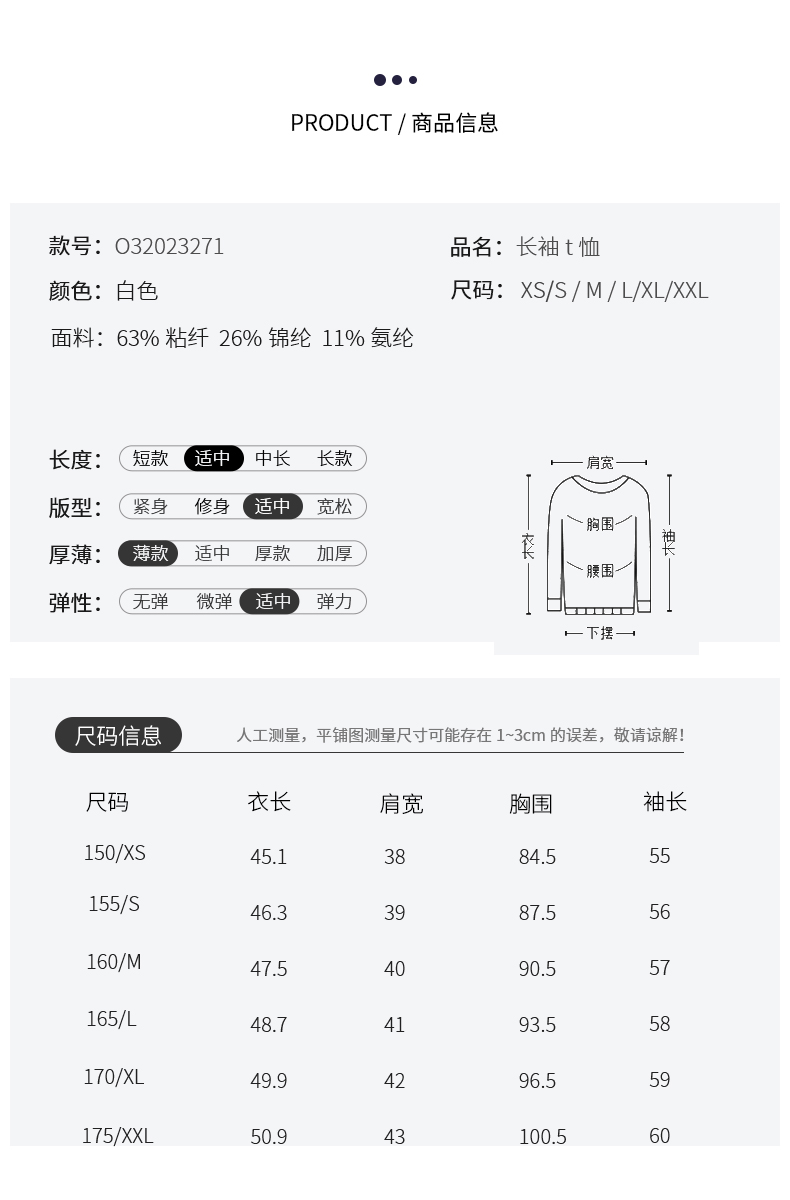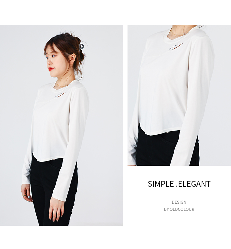 oldcolour2022秋季商场同款百搭气质长袖短款白色t恤女O32023271