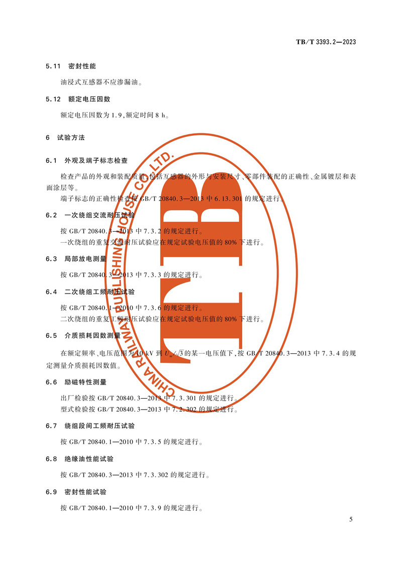 15113.6752 机车车辆高压互感器 第2部分:电磁式电压互感器TB/T3393.2-2023