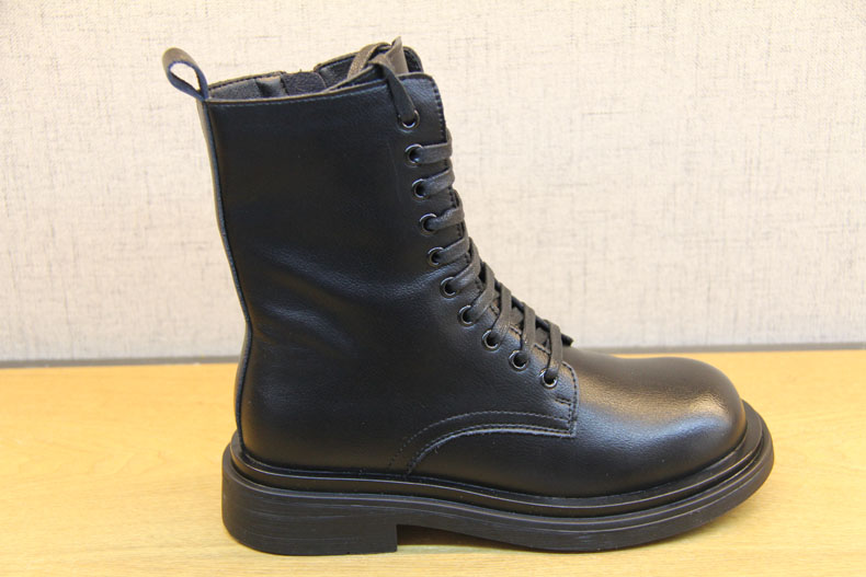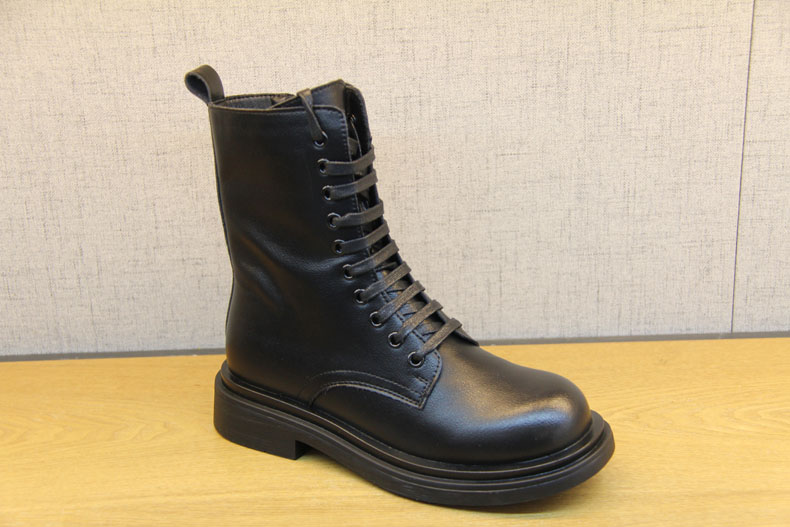 豪行冬款20478501马丁靴加绒黑色英伦风百搭女鞋拉链潮ins瘦瘦靴