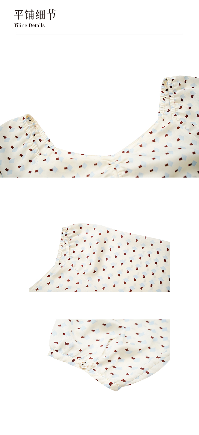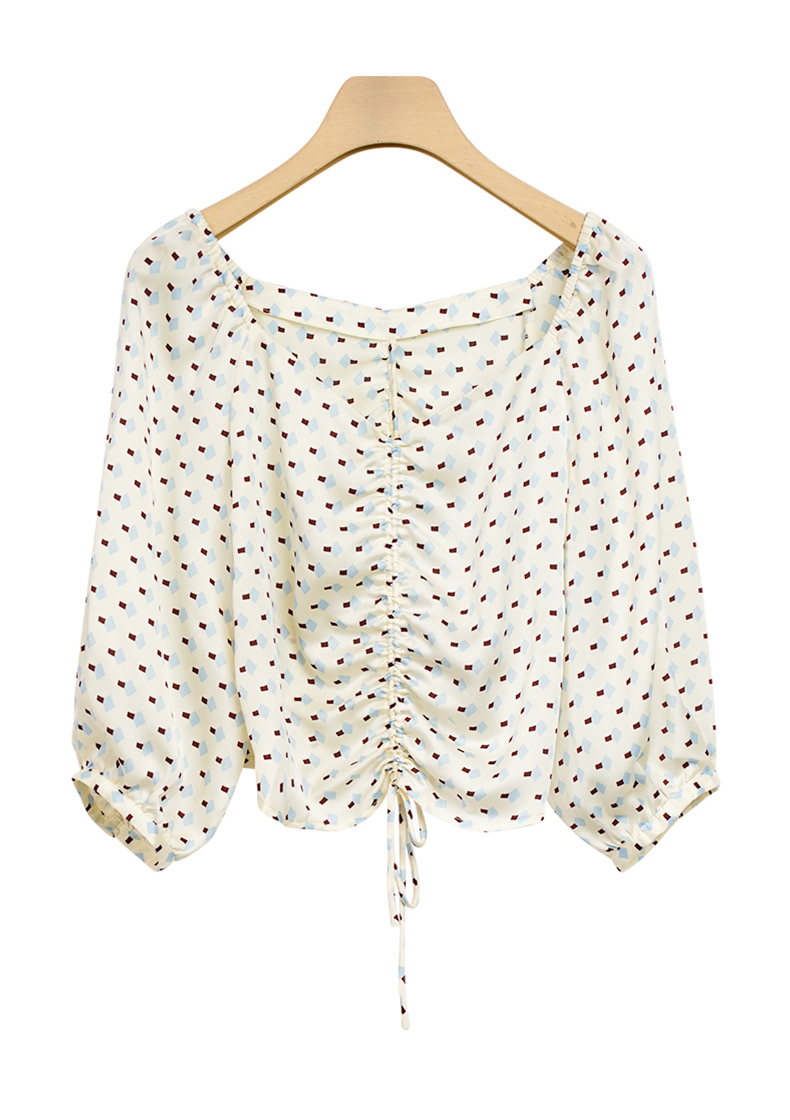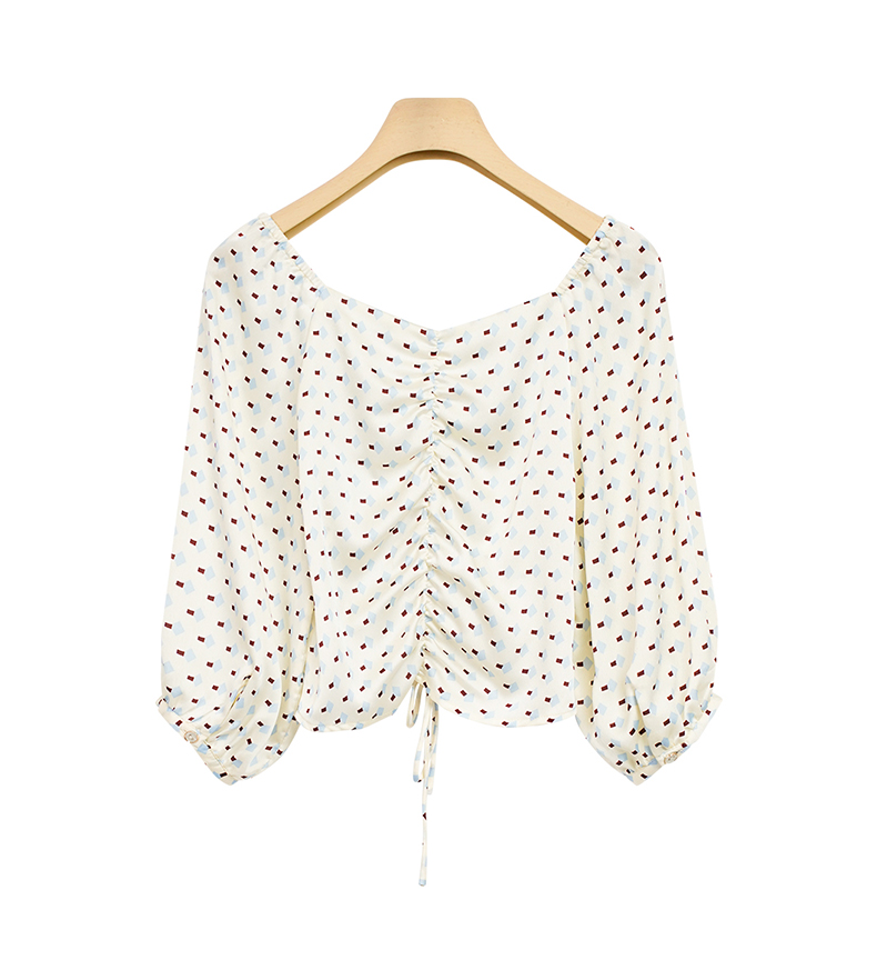 NUTS夏季泡泡袖波点拼接收腰显瘦上衣女221012032B
