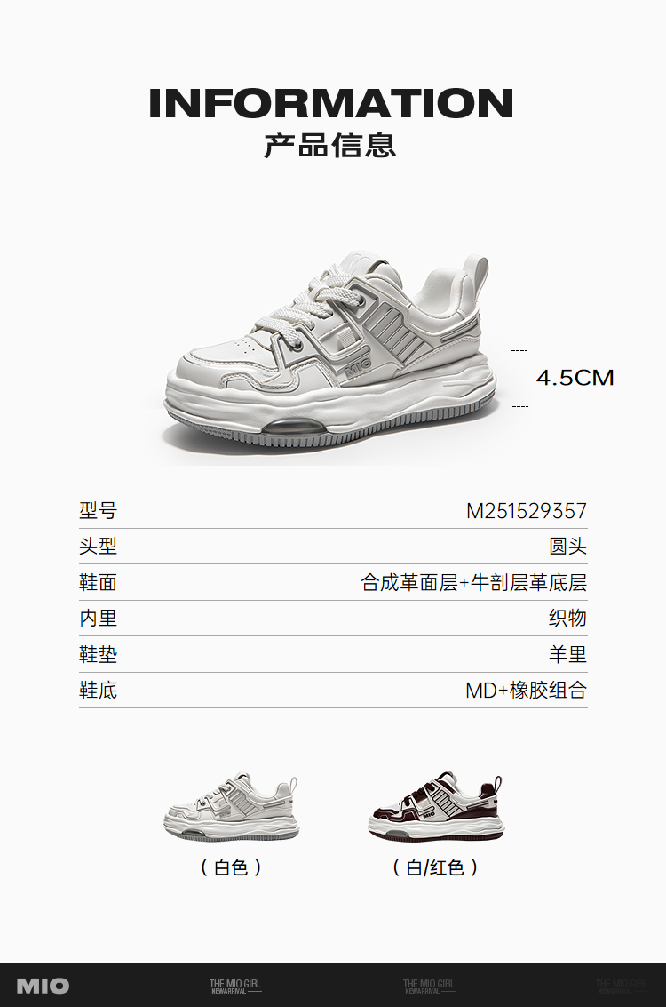 MIO米奥溶解底潮流板鞋时尚休闲鞋厚底舒适运动鞋女M251529357