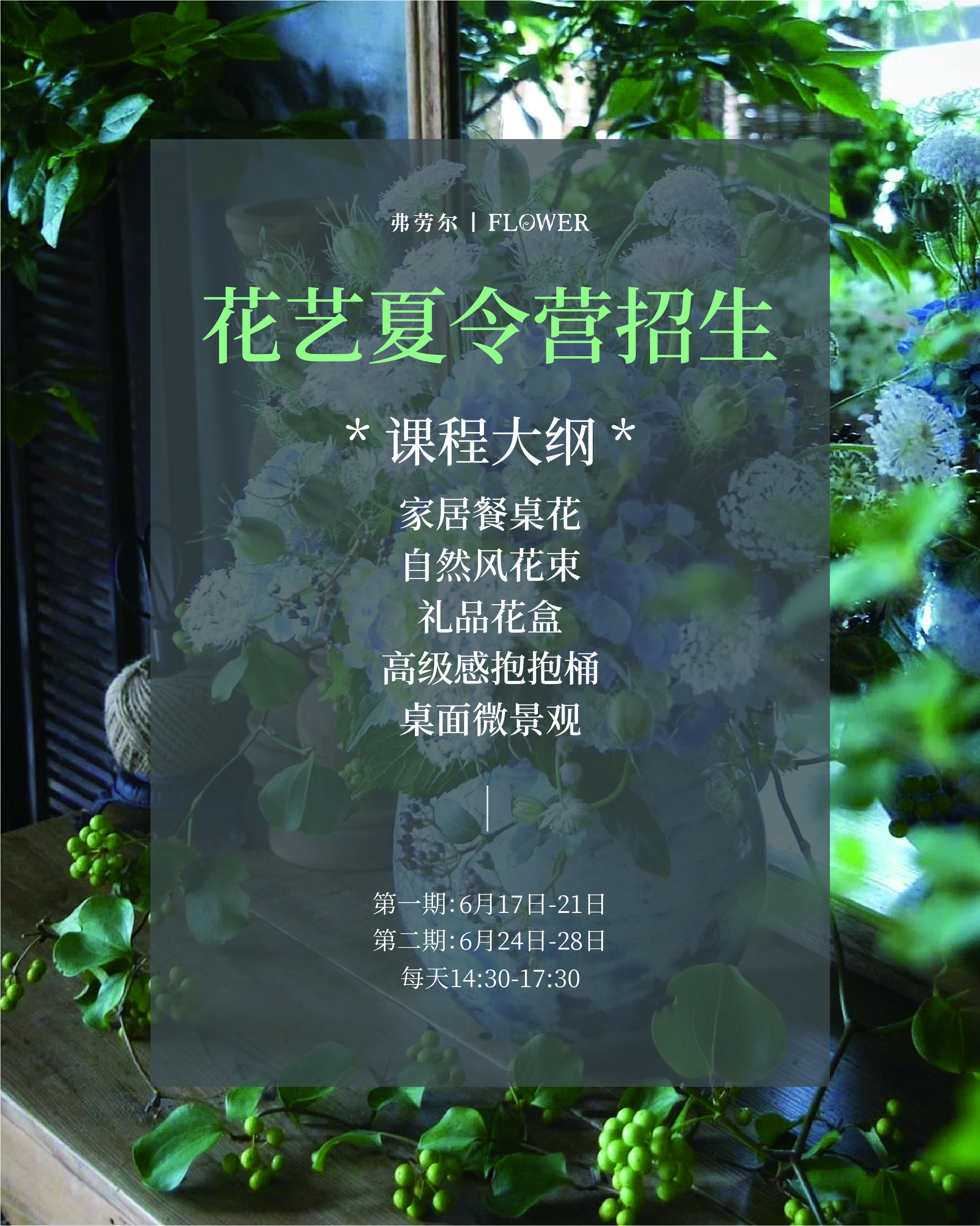 【花艺夏令营】共5节系统花艺课程(详情如下图,可扫码咨询客服)
