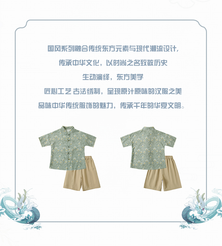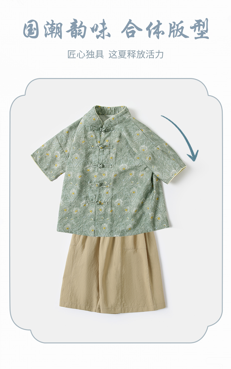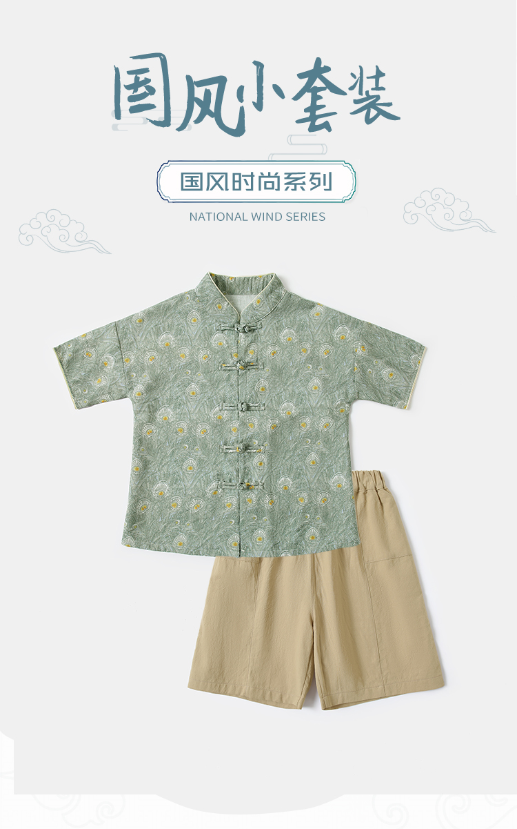 【两件套】【90-140】【MQDmini】男童短袖汉服套装复古国潮
