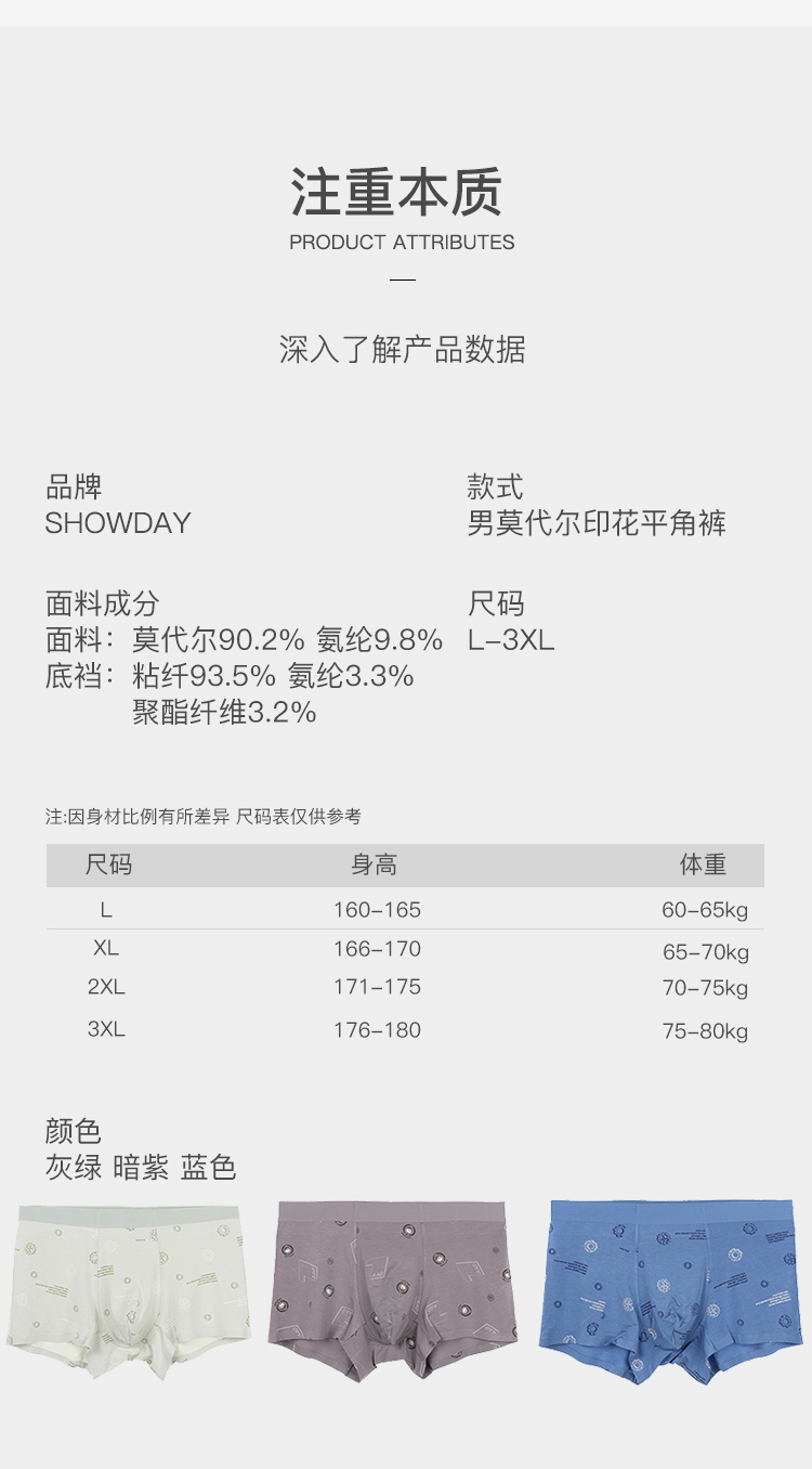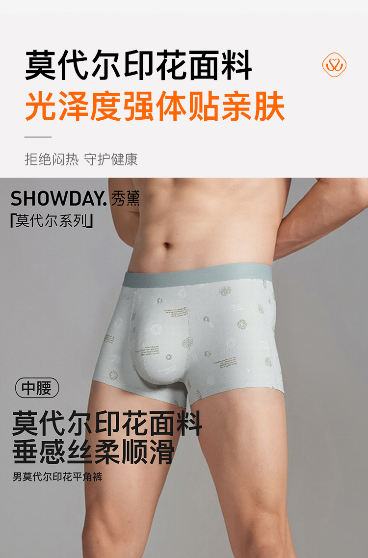 【满3条/6.7折】【秀黛】男莫代尔印花平角裤男士内裤【1条】S6330003T【门店同款】【内裤非质量问题不退换】