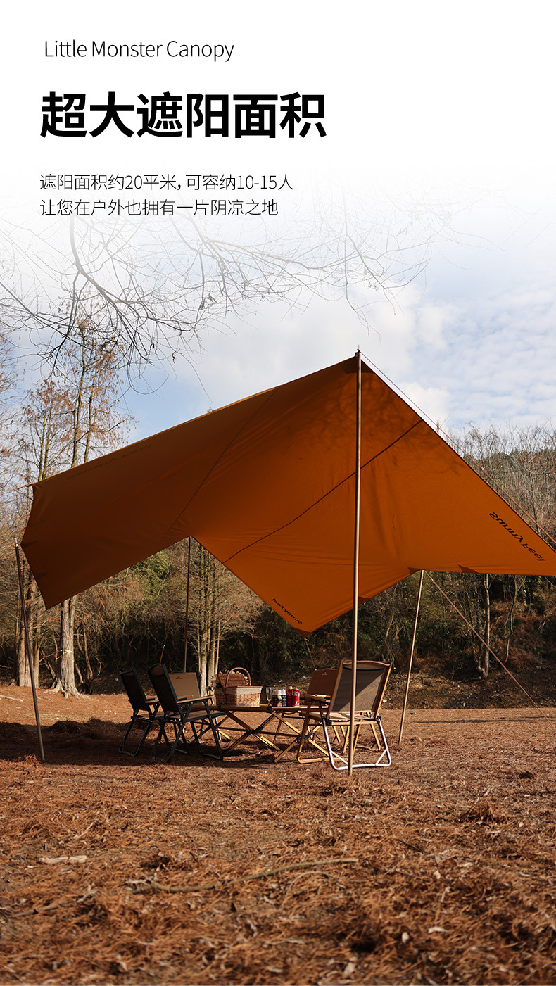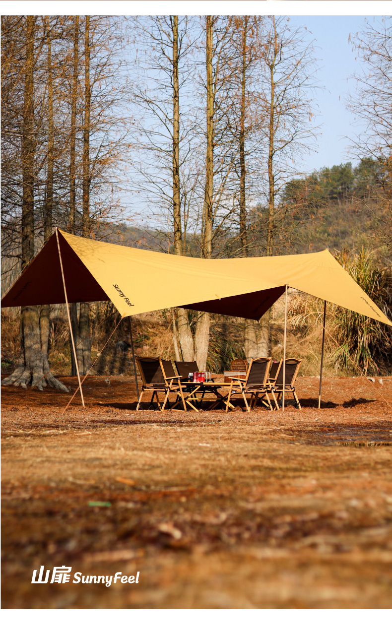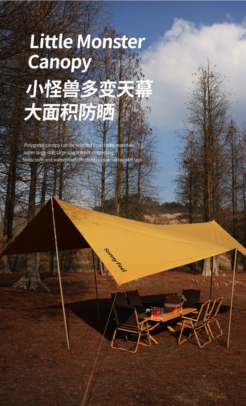 精品SunnyFeel户外露营超大防风小怪兽防晒天幕_便携式野营六角涤棉天幕