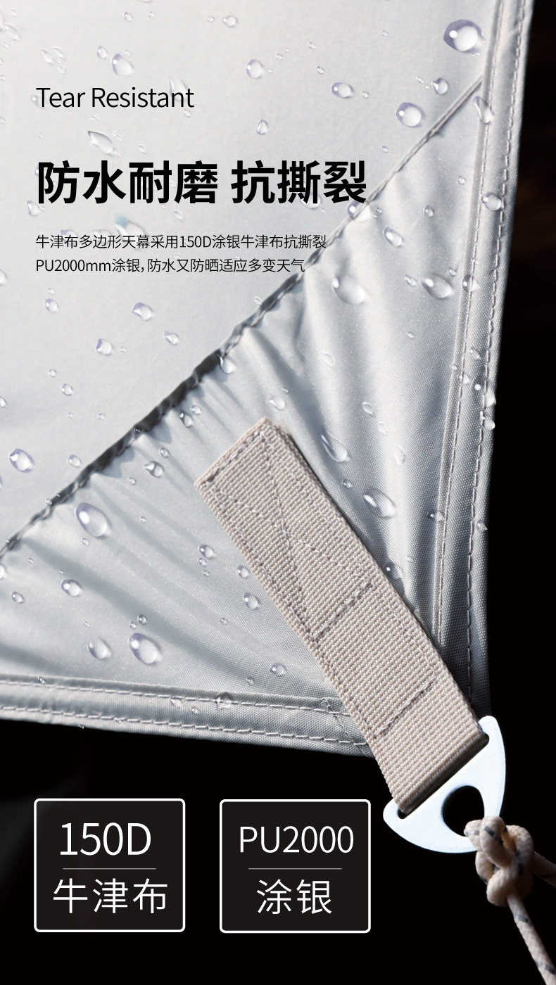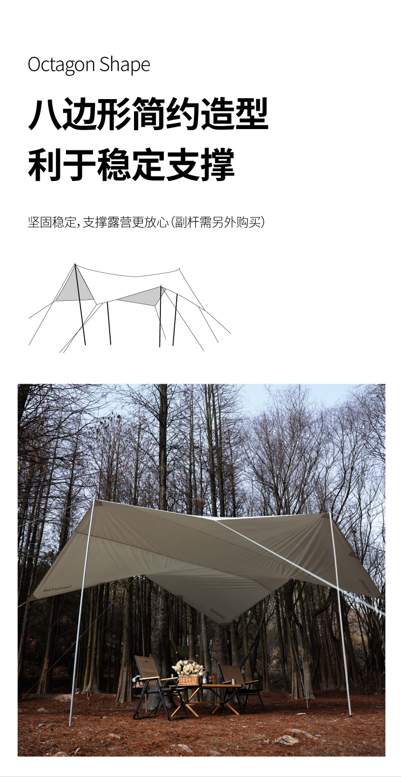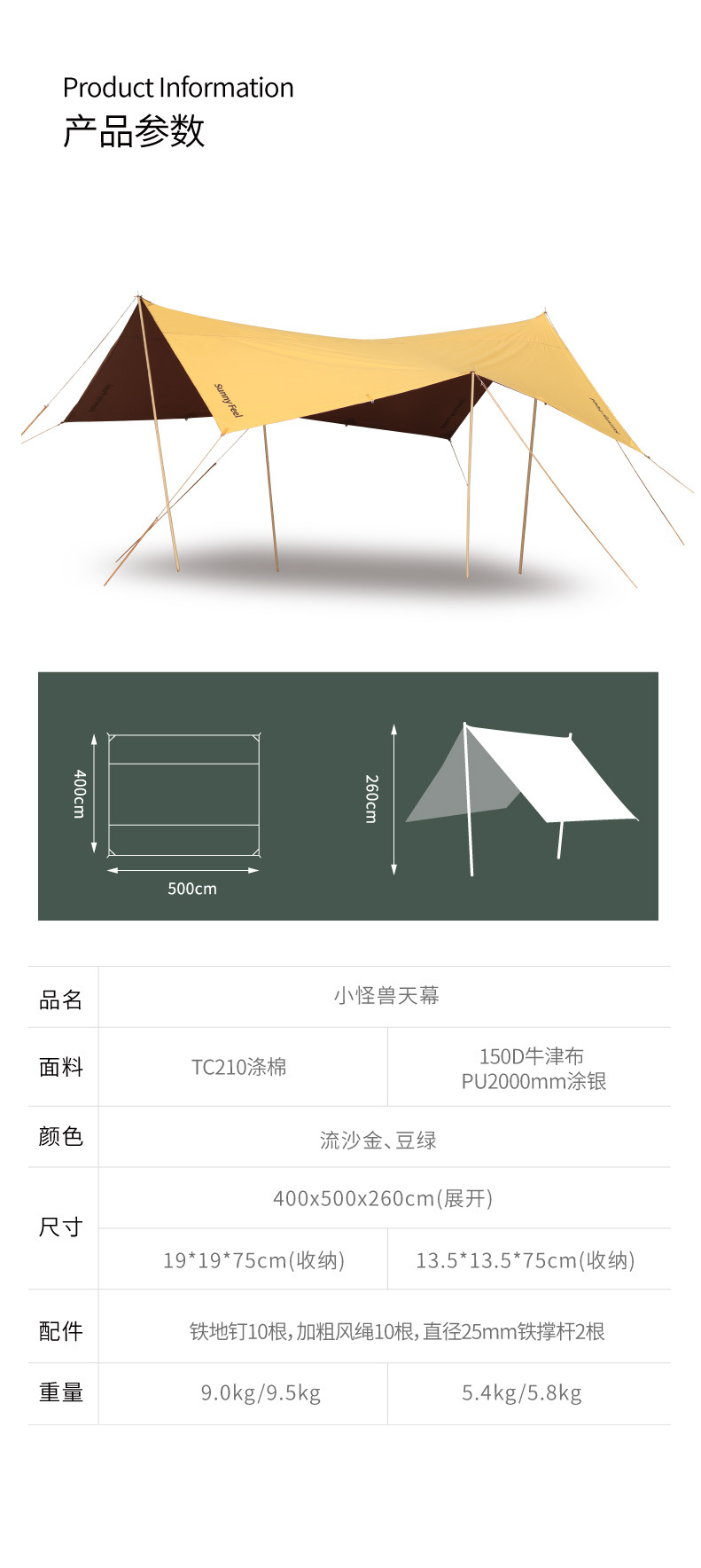 精品SunnyFeel户外露营超大防风小怪兽防晒天幕_便携式野营六角涤棉天幕