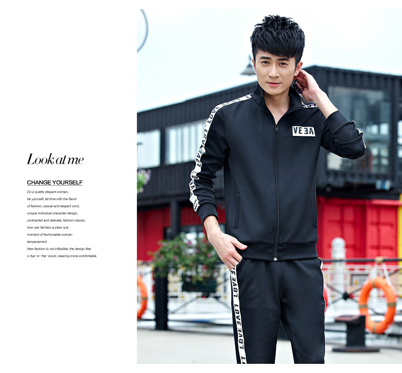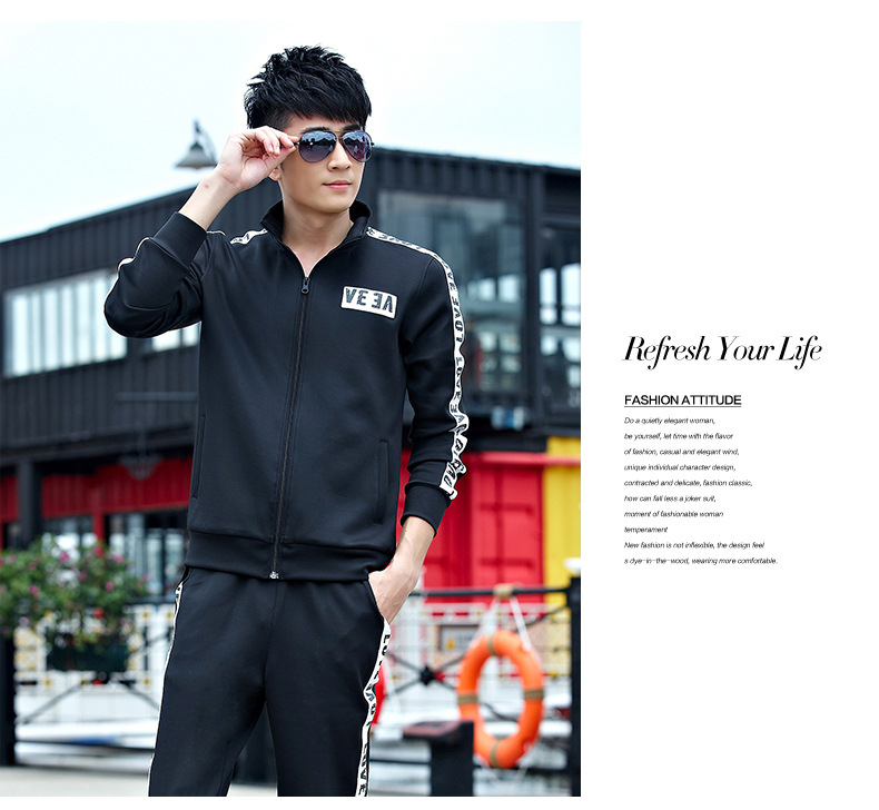 【服饰鞋包】 秋款健身房套装男生运动套装春秋跑步服两件套青年学生运动衣
