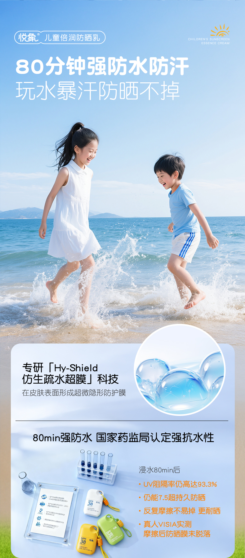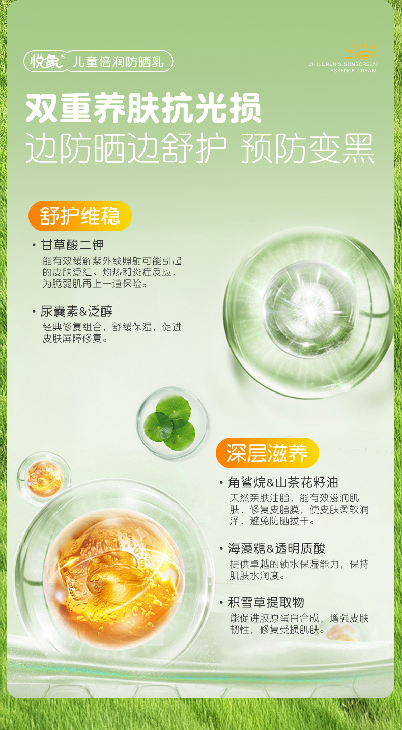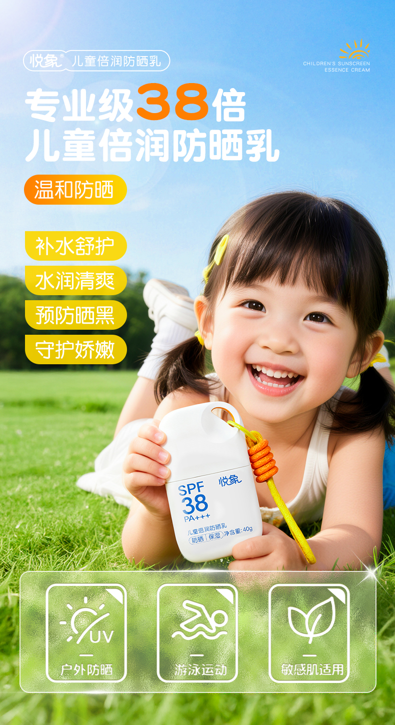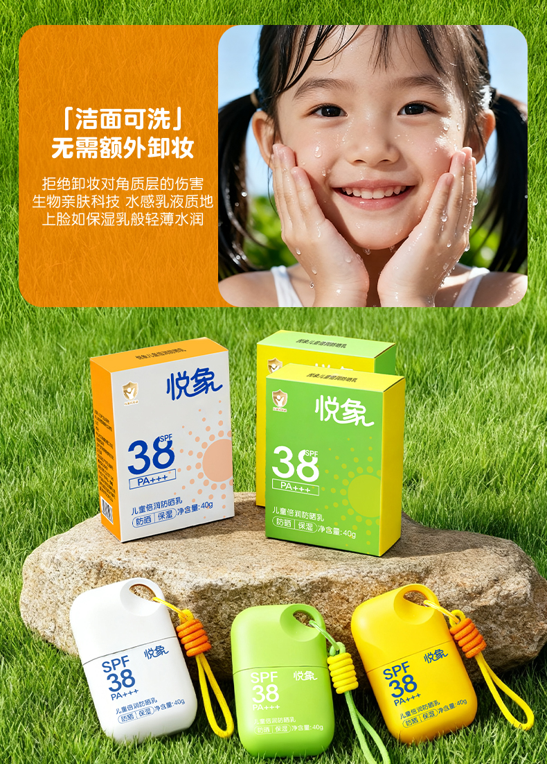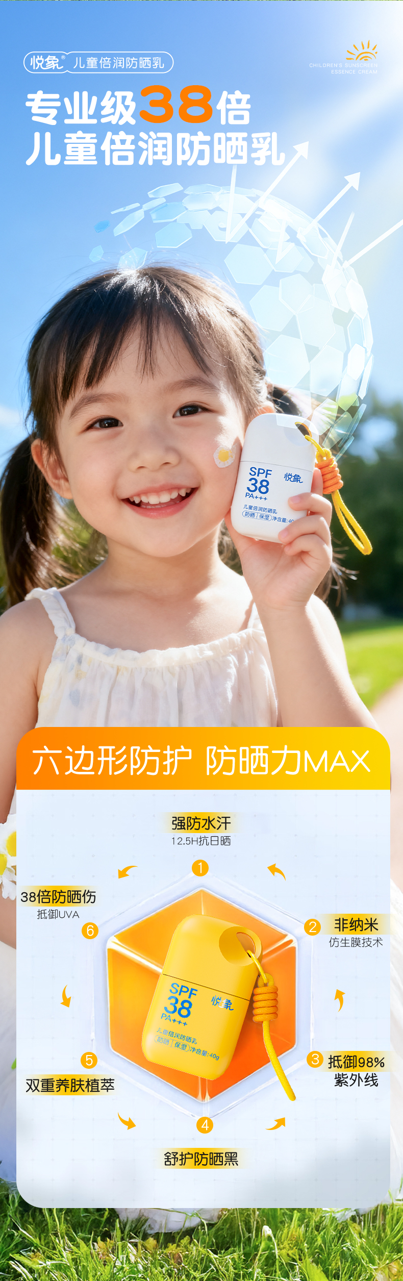 「SPF38 PA+++」开启夏日防护「小金盾」悦象儿童倍润防晒乳
