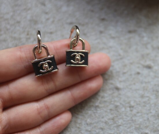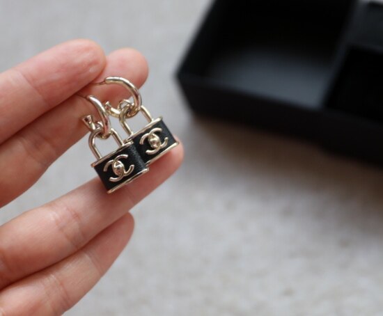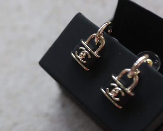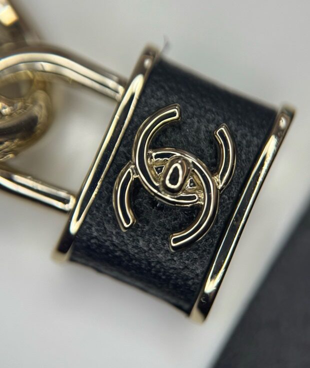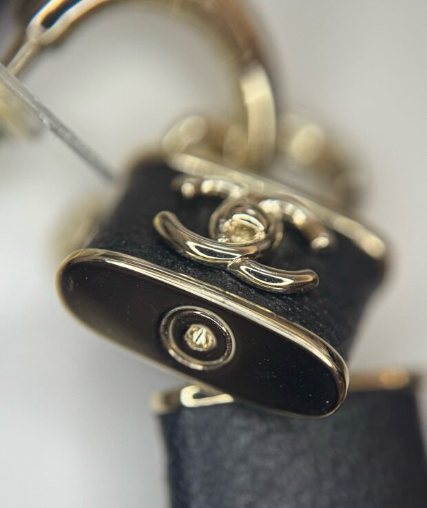 只有正面 有双C标 是突起在黑皮上的 小横扣 再微微突起 底部锁孔 是装饰