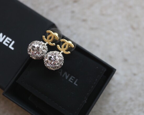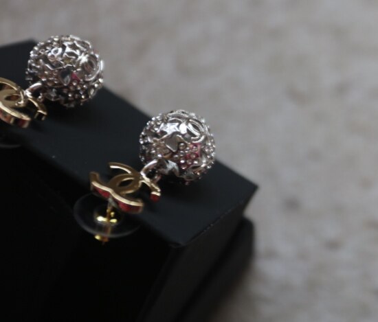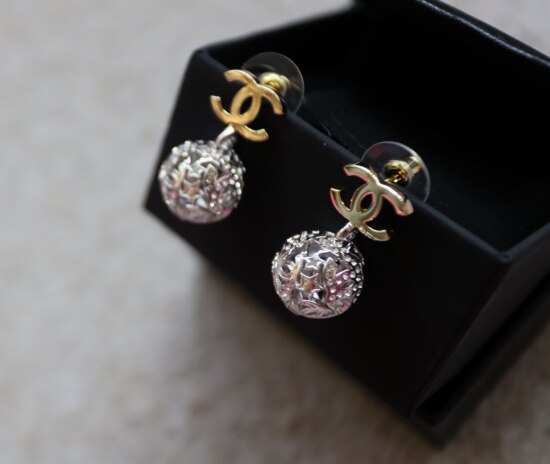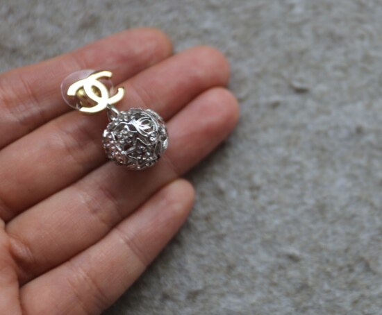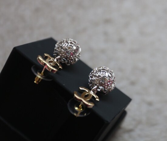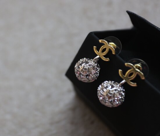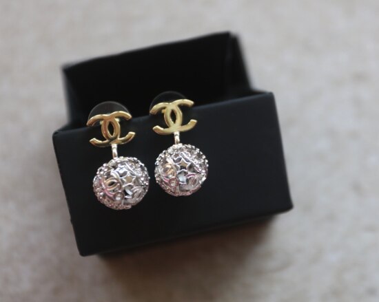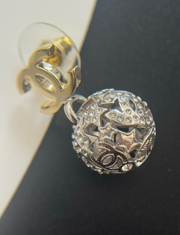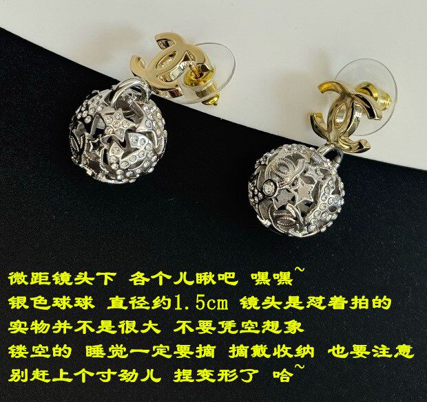 镂空小银球 浅金色的双C标+银色球球 通体黄铜 分件分色电镀