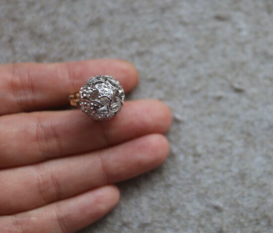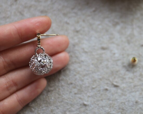 这球球的细节特别难拍 镂空的 上面有很小很小颗的白钻 加之 银色又很反光
